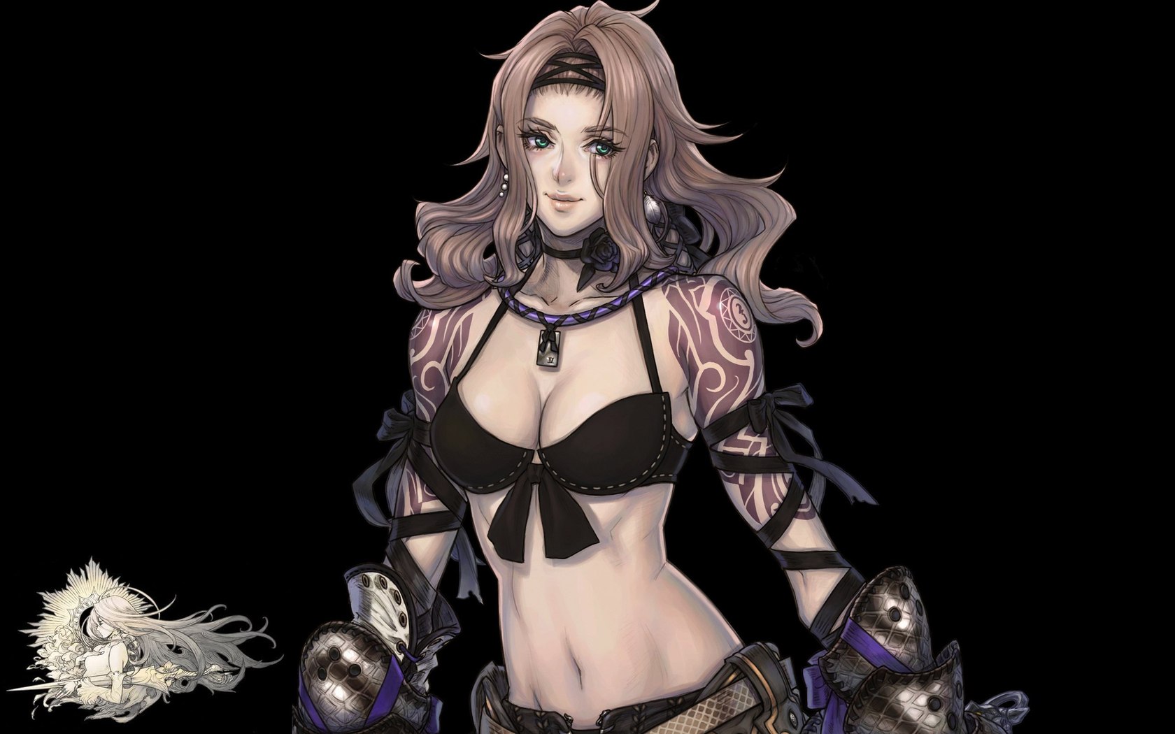 Скачать обои для рабочего стола Девушка с тату на черном фоне и фото