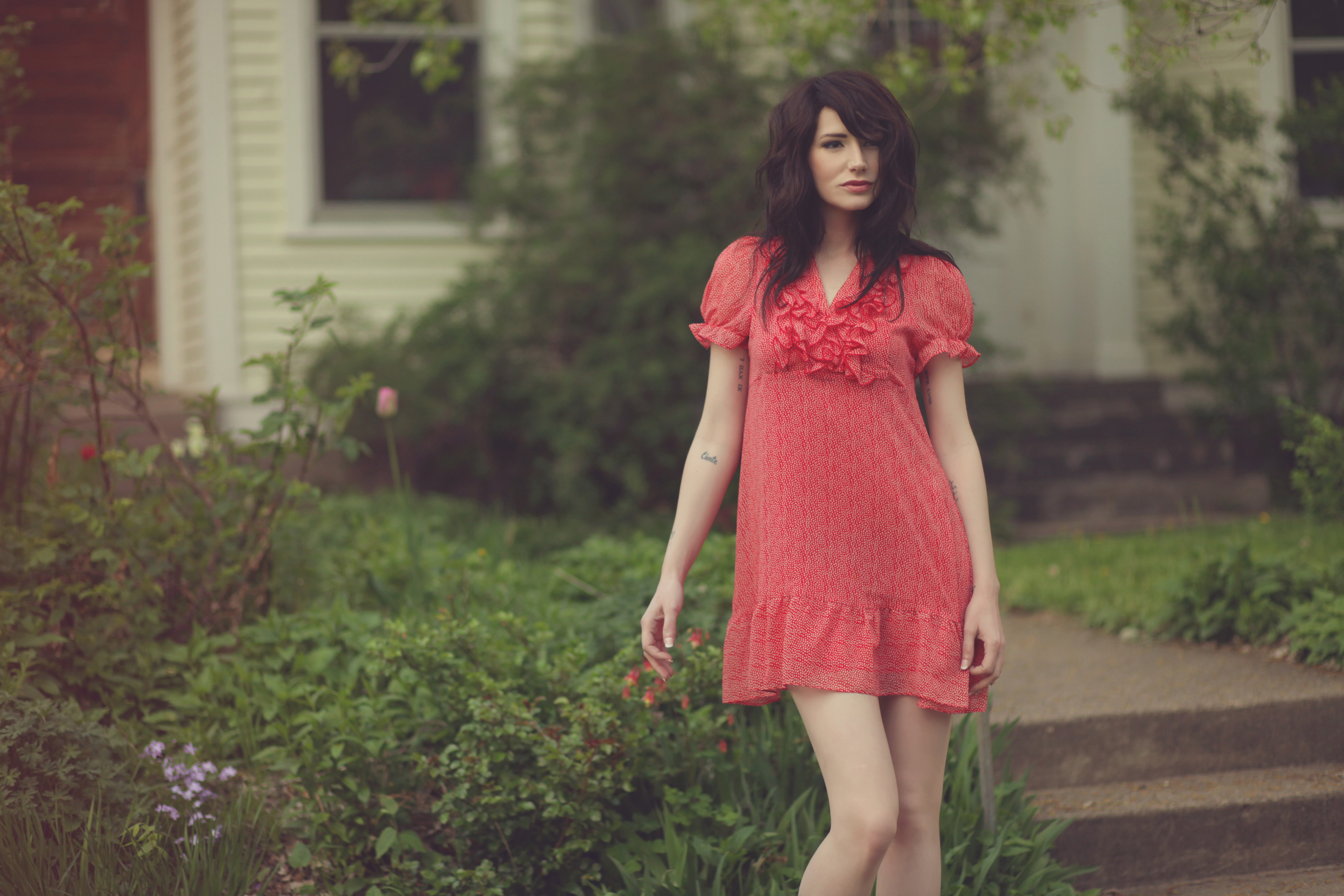 Скачать обои для рабочего стола Девушка с тату на руках и фото