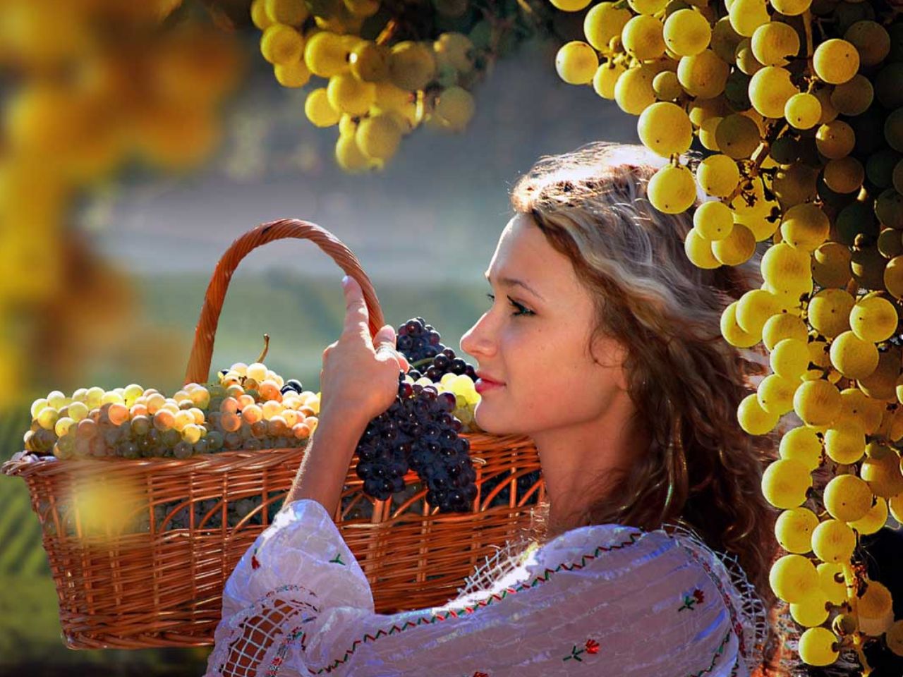Скачать обои для рабочего стола Девушка с виноградом. Крым и фото