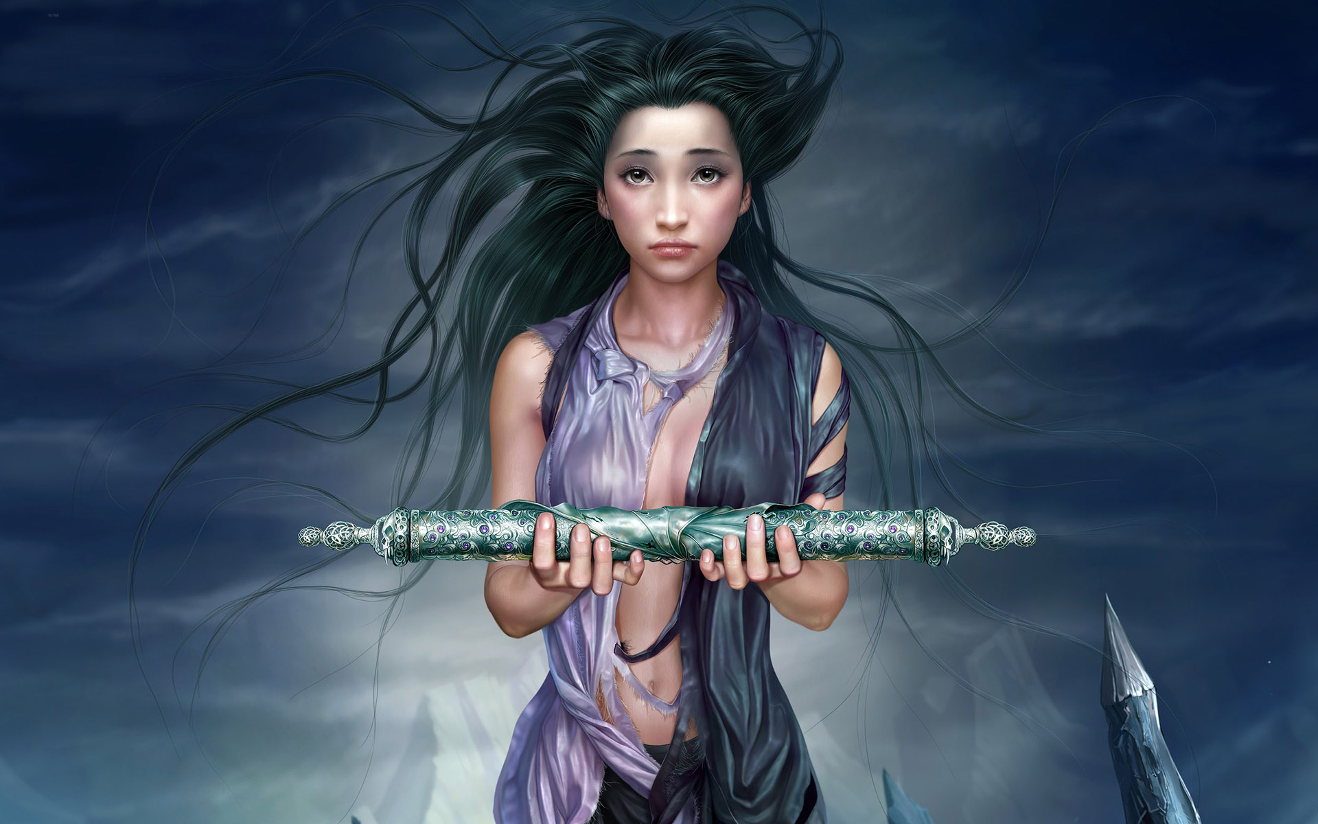 Скачать обои для рабочего стола Девушка с волшебным свитком и фото