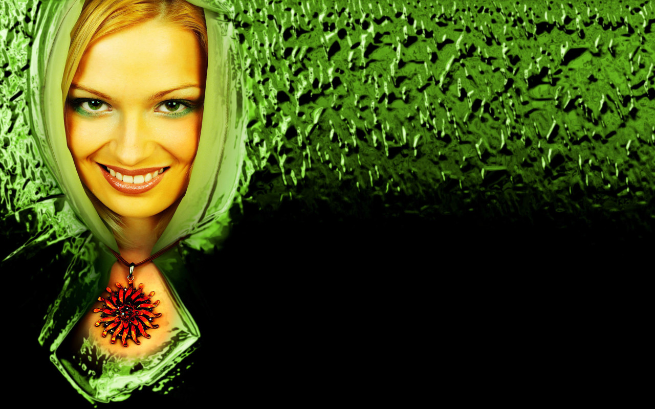 Скачать обои для рабочего стола Девушка с зелёными волосами и фото