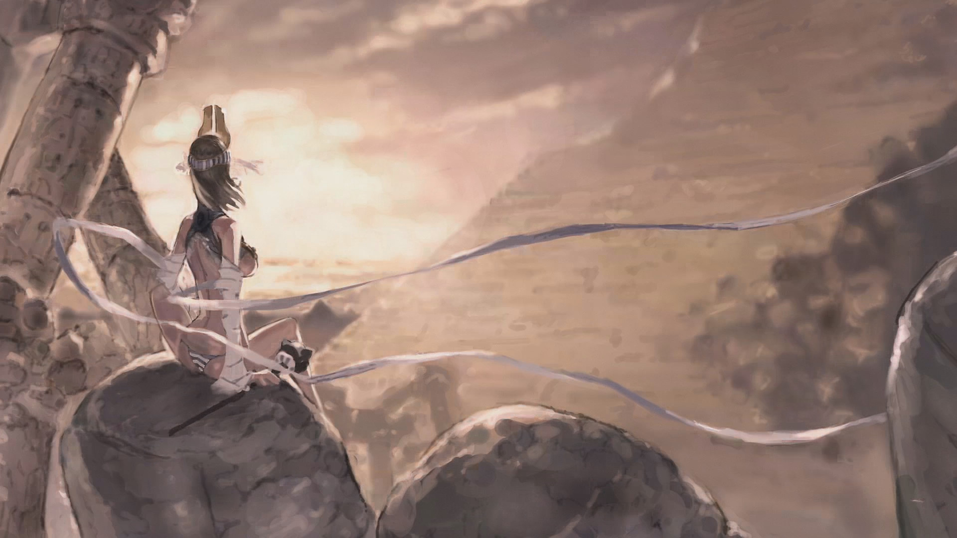 Скачать обои для рабочего стола Девушка смотрящая на пирамиду и фото