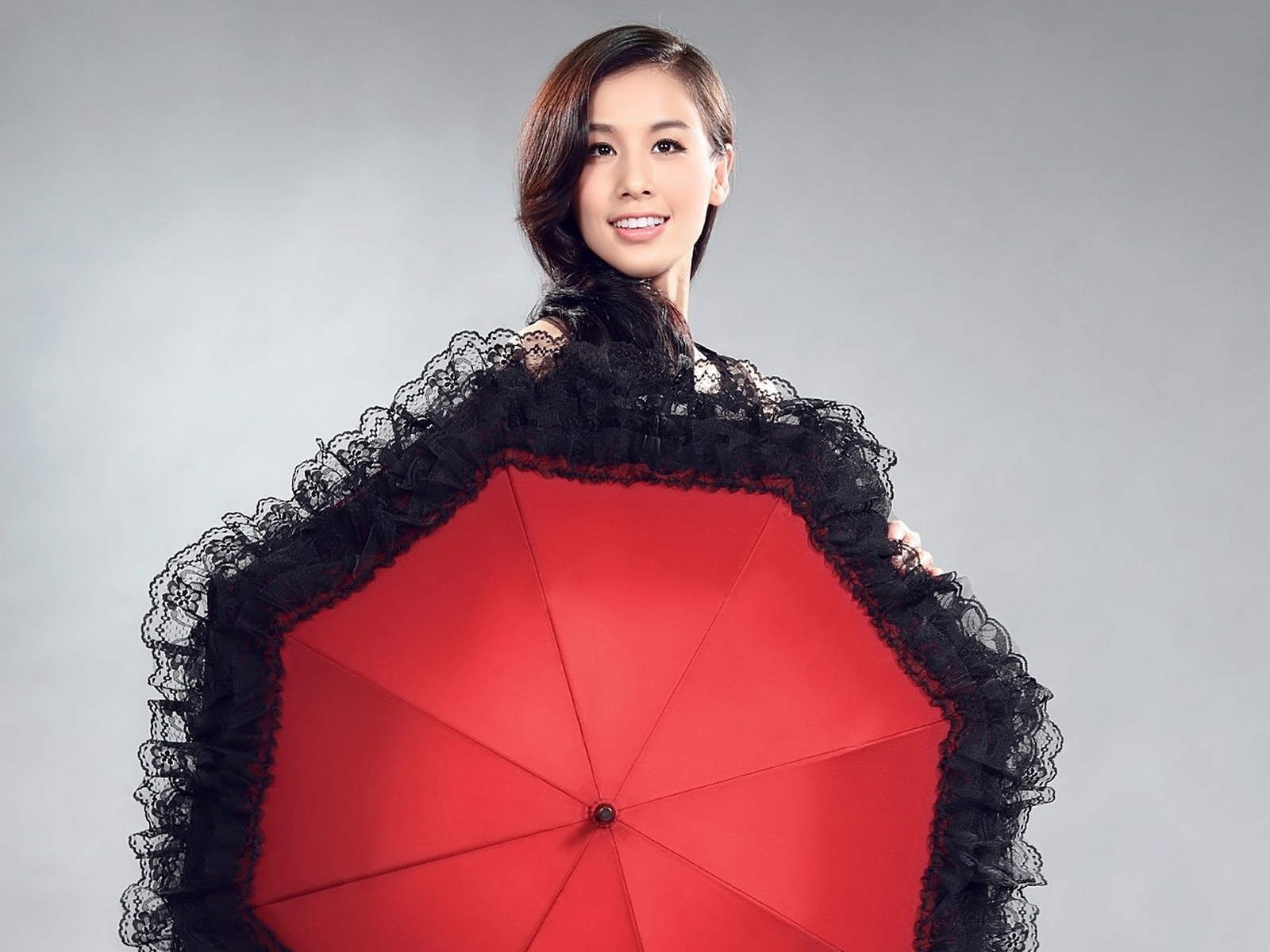 Похожие обои на Девушка спрятав тело за красным зонтом: