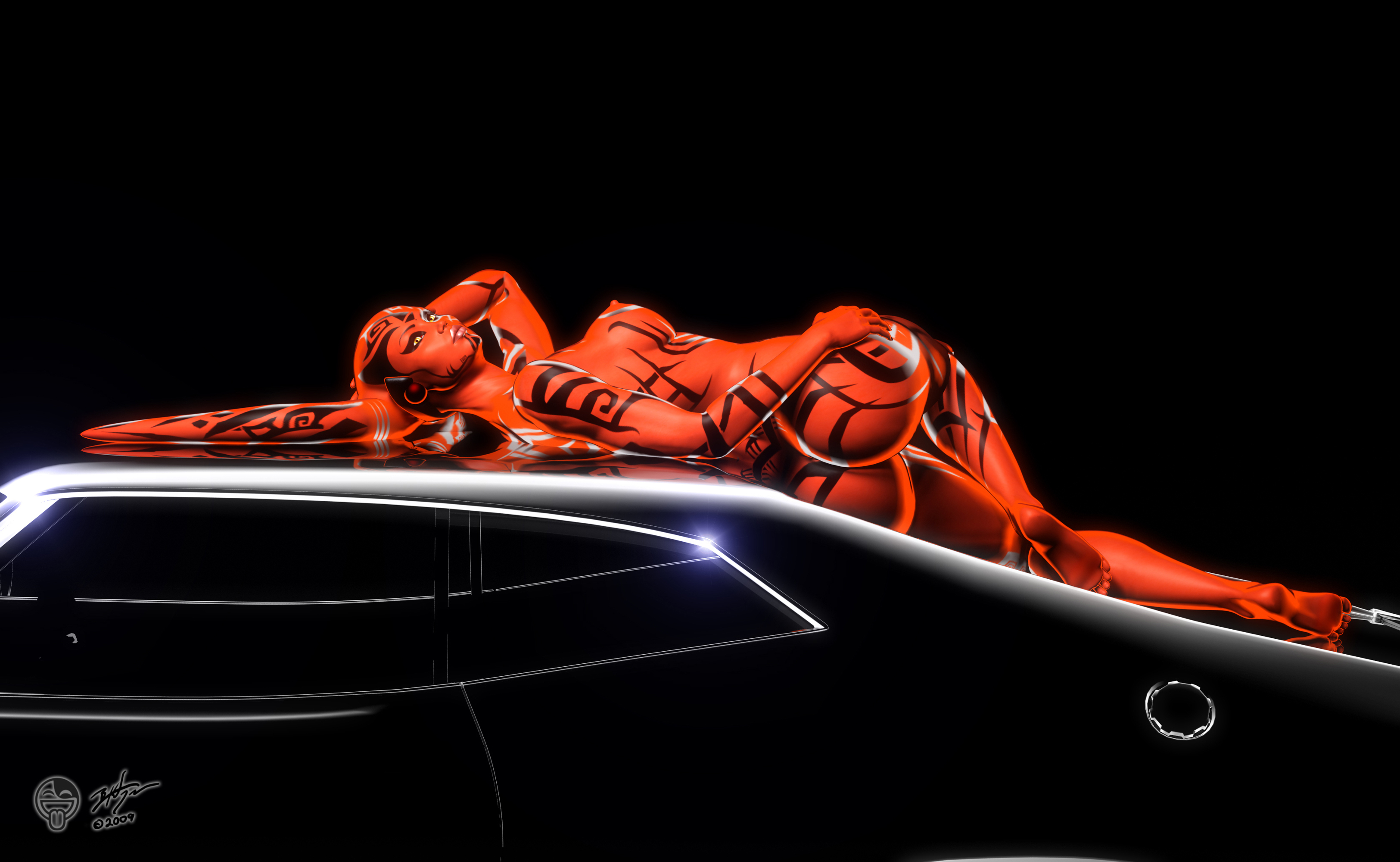 Скачать обои для рабочего стола Девушка тату на авто и фото