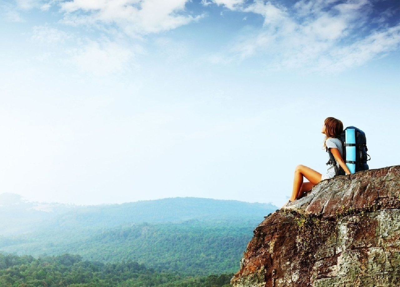 Скачать обои для рабочего стола Девушка - туристка на просторе и фото