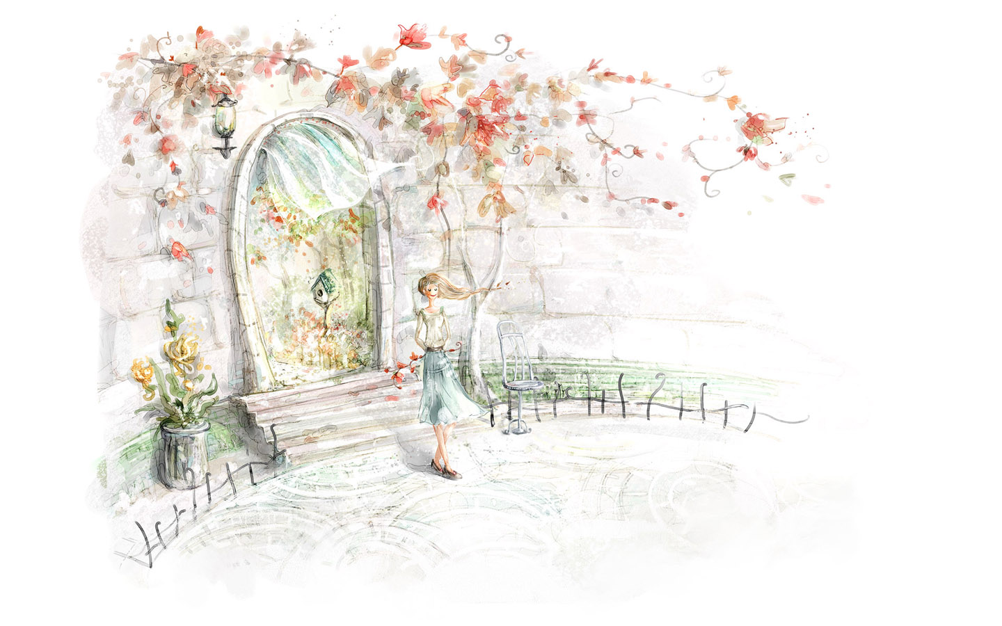 Скачать обои для рабочего стола Девушка у крыльца и фото