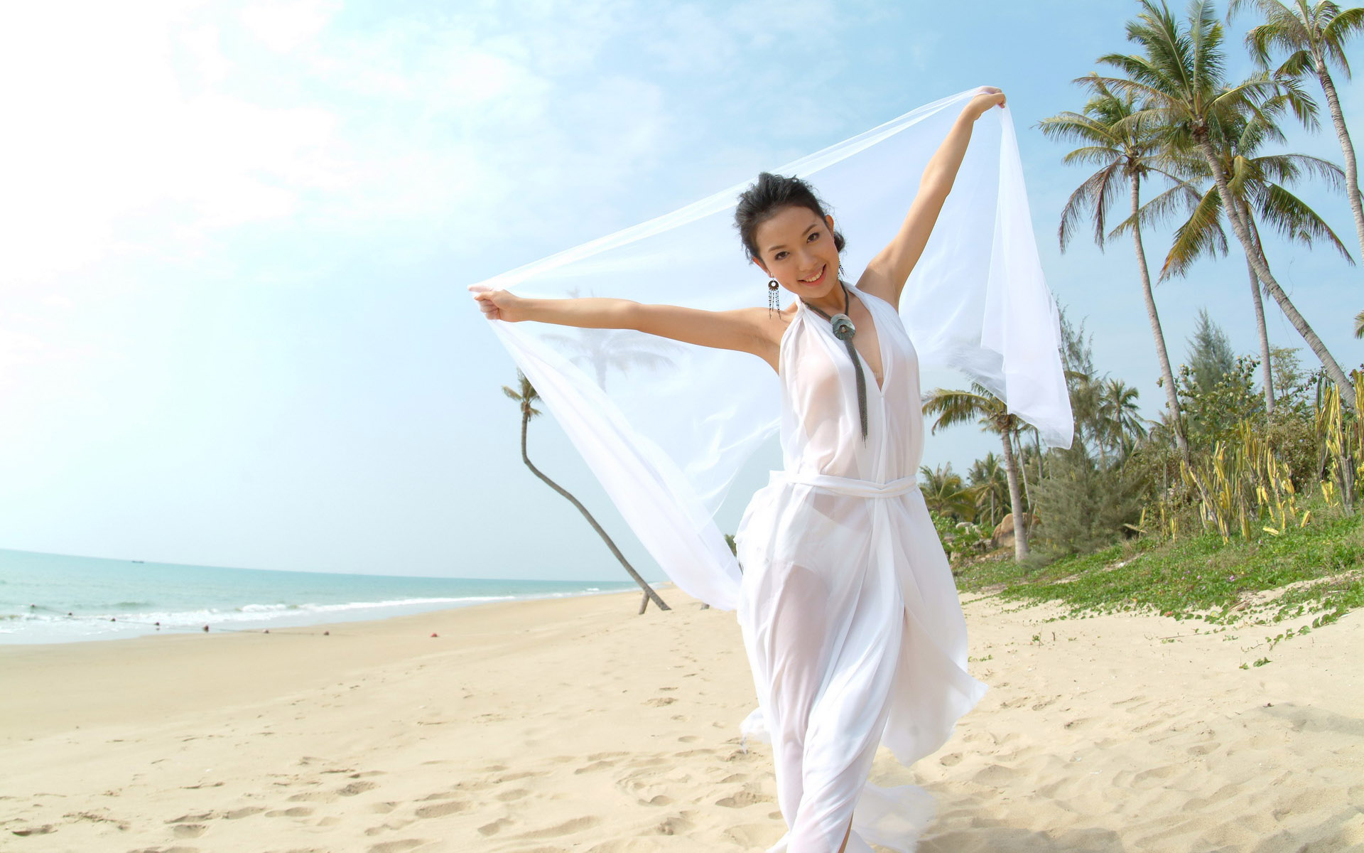 Скачать обои для рабочего стола Девушка в белом на пляже и фото