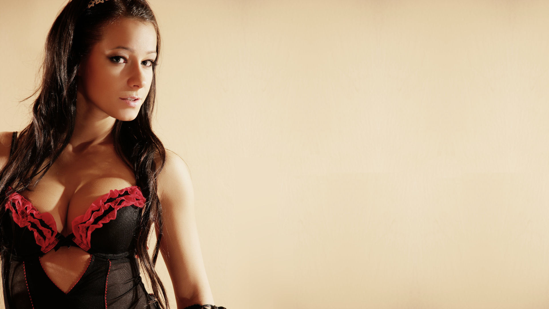 Похожие обои на Девушка в черном боди с красной окантовкой:
