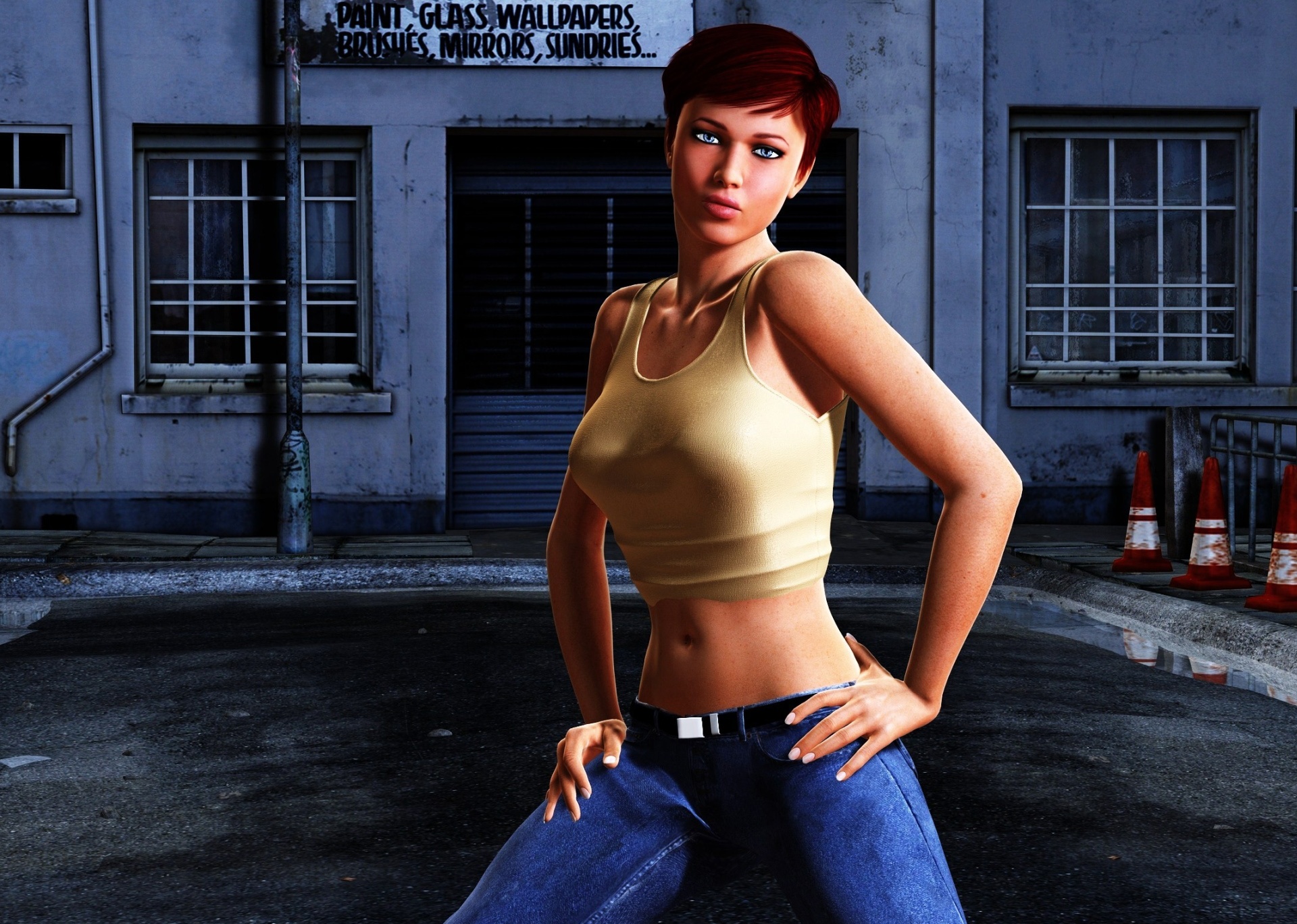 Обои Девушка в джинсах и маечке