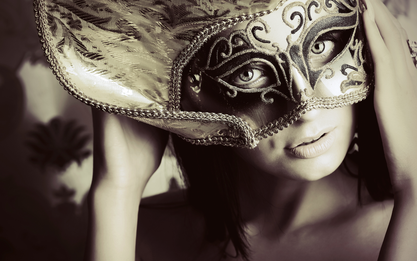 Скачать обои для рабочего стола Девушка в красивой маске и фото