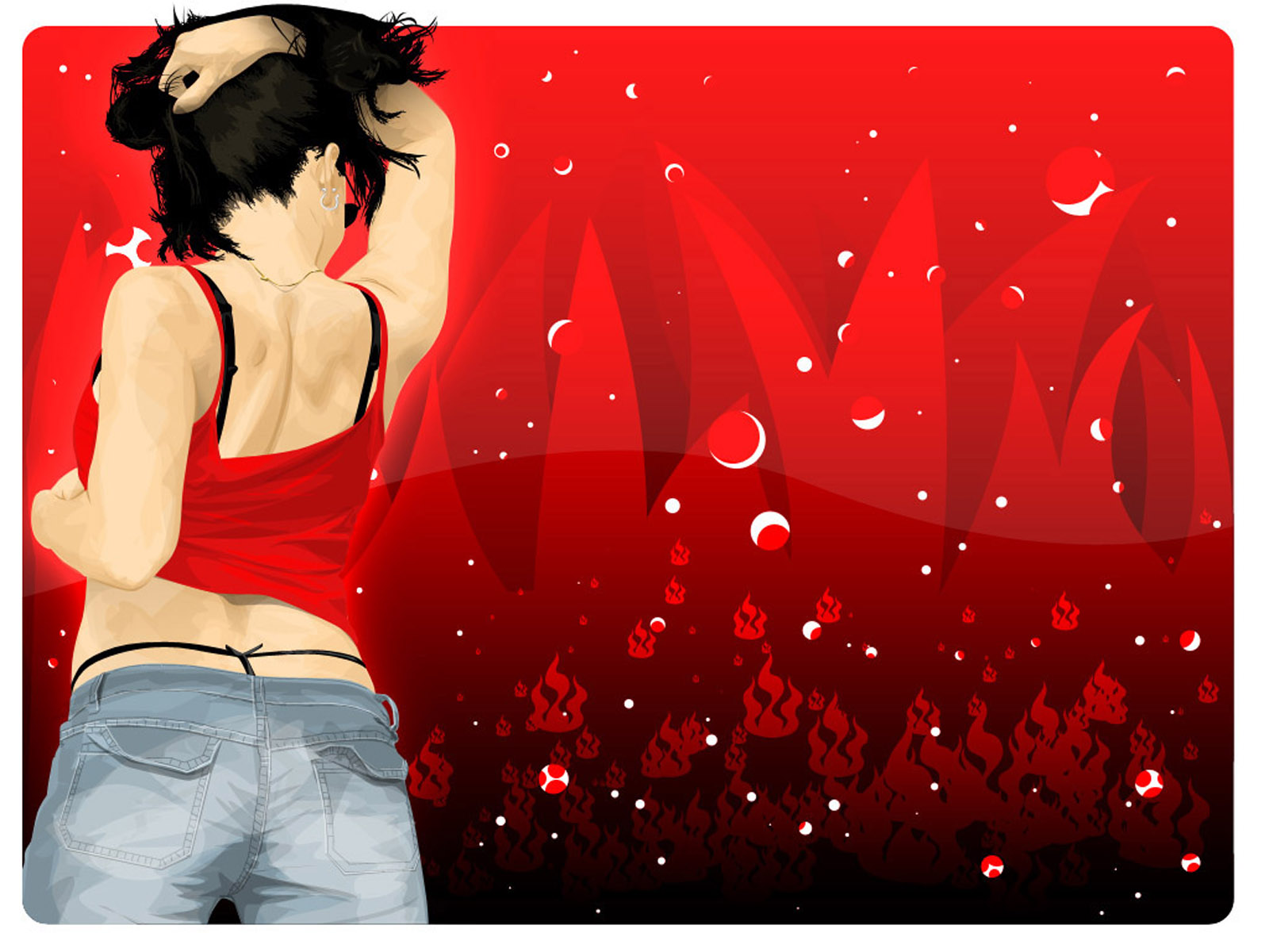 Похожие обои на Девушка в красном топике: