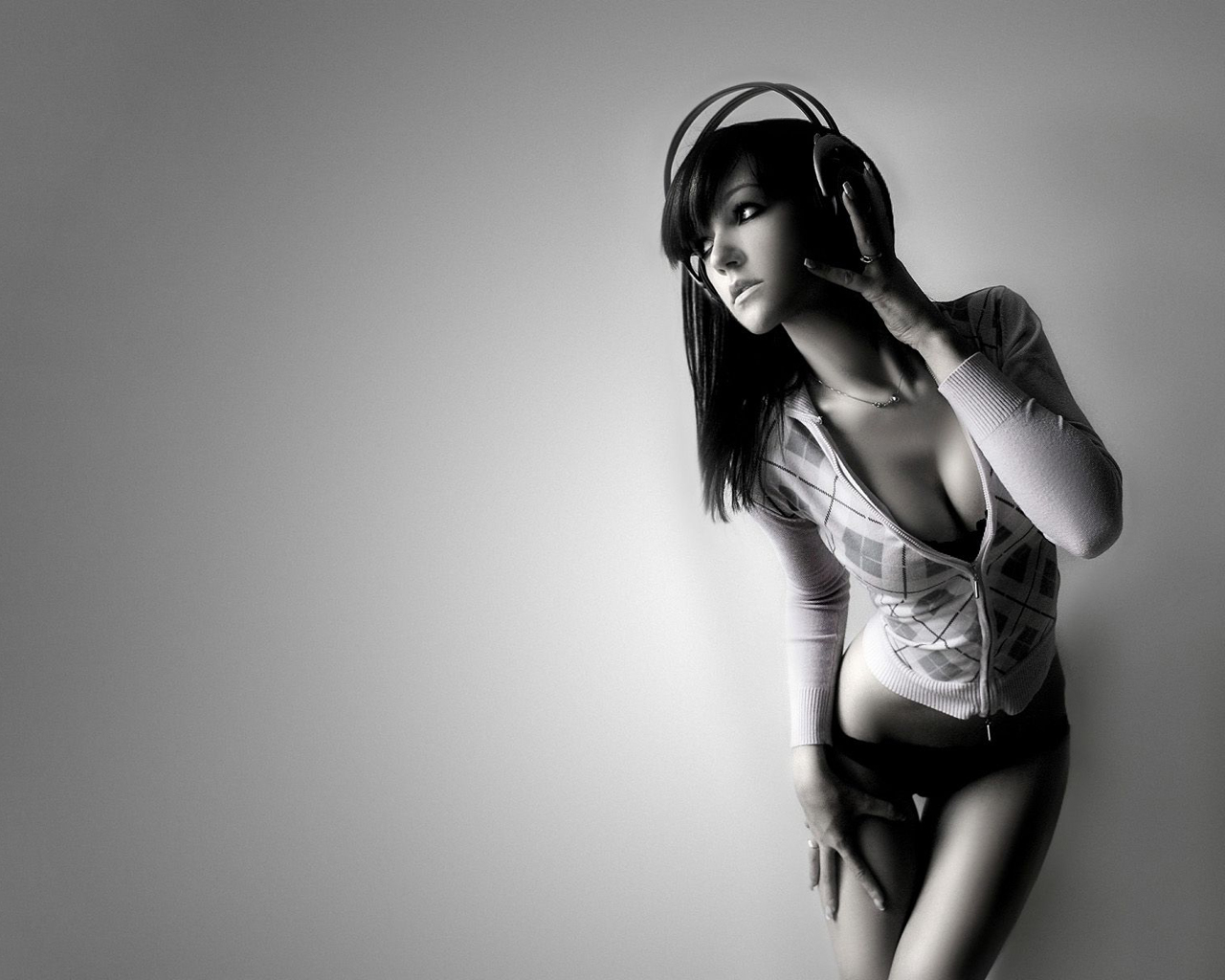 Скачать обои для рабочего стола Девушка в наушниках кайфует и фото