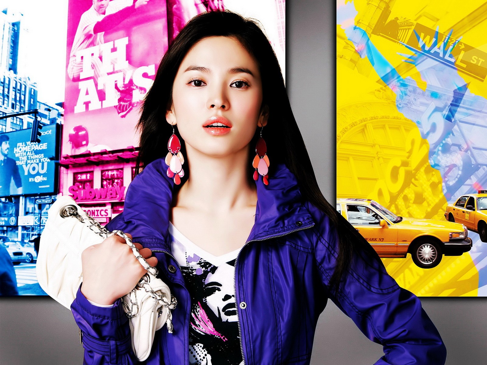 Похожие обои на Девушка в синей куртке с белой сумочкой: