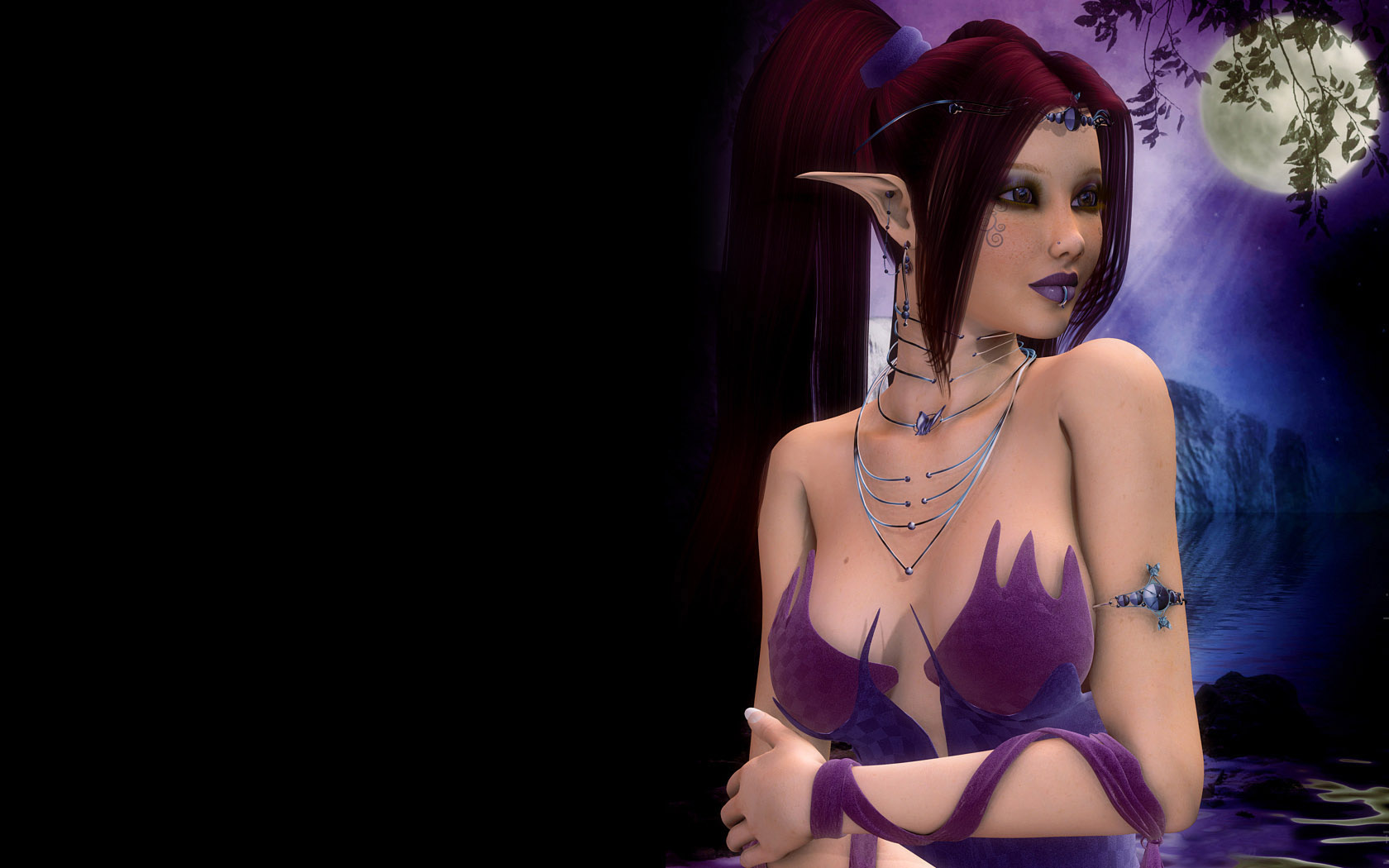 Скачать обои для рабочего стола Девушка в свете луны и фото