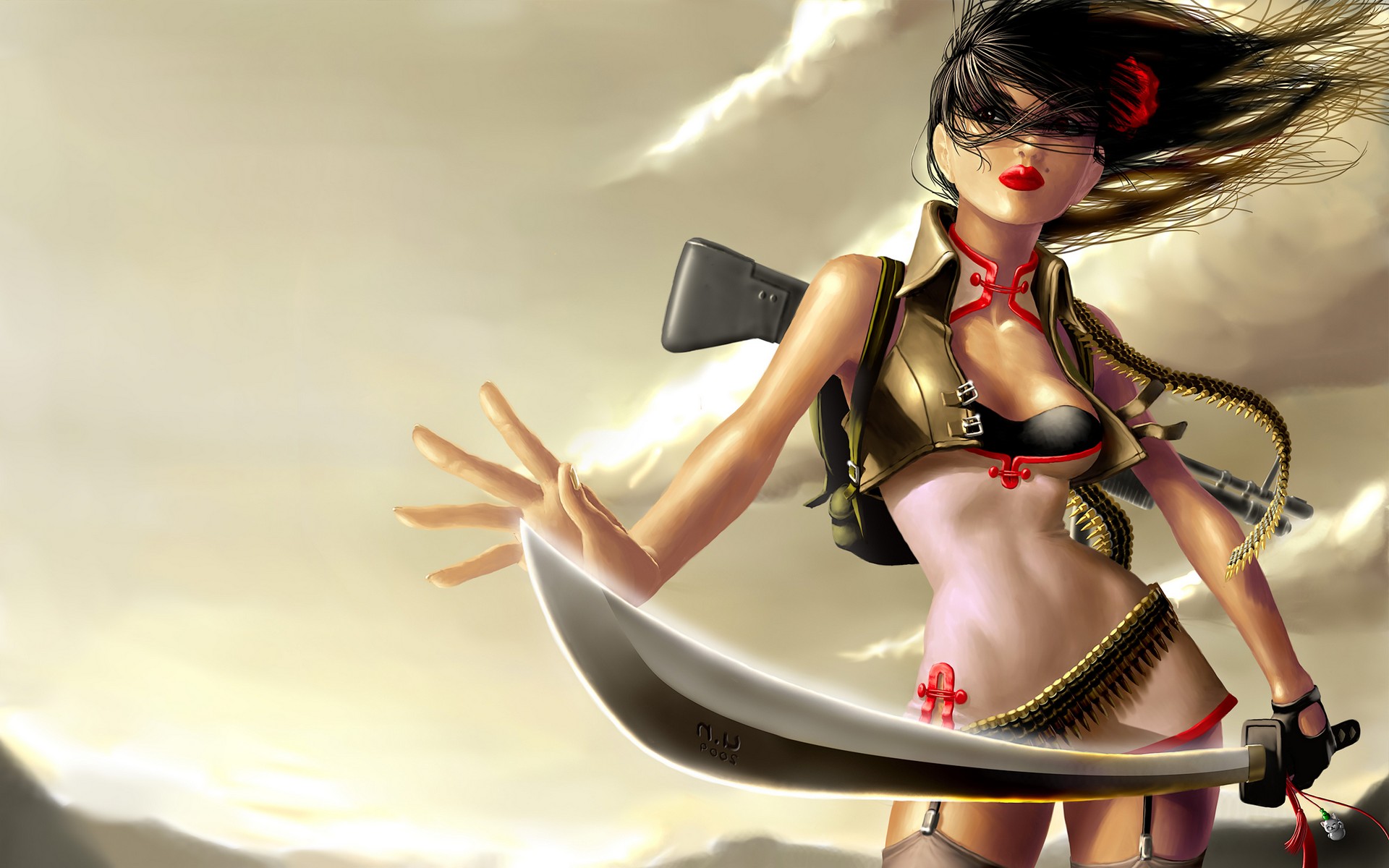 Скачать обои для рабочего стола Девушка воин с мечем и фото
