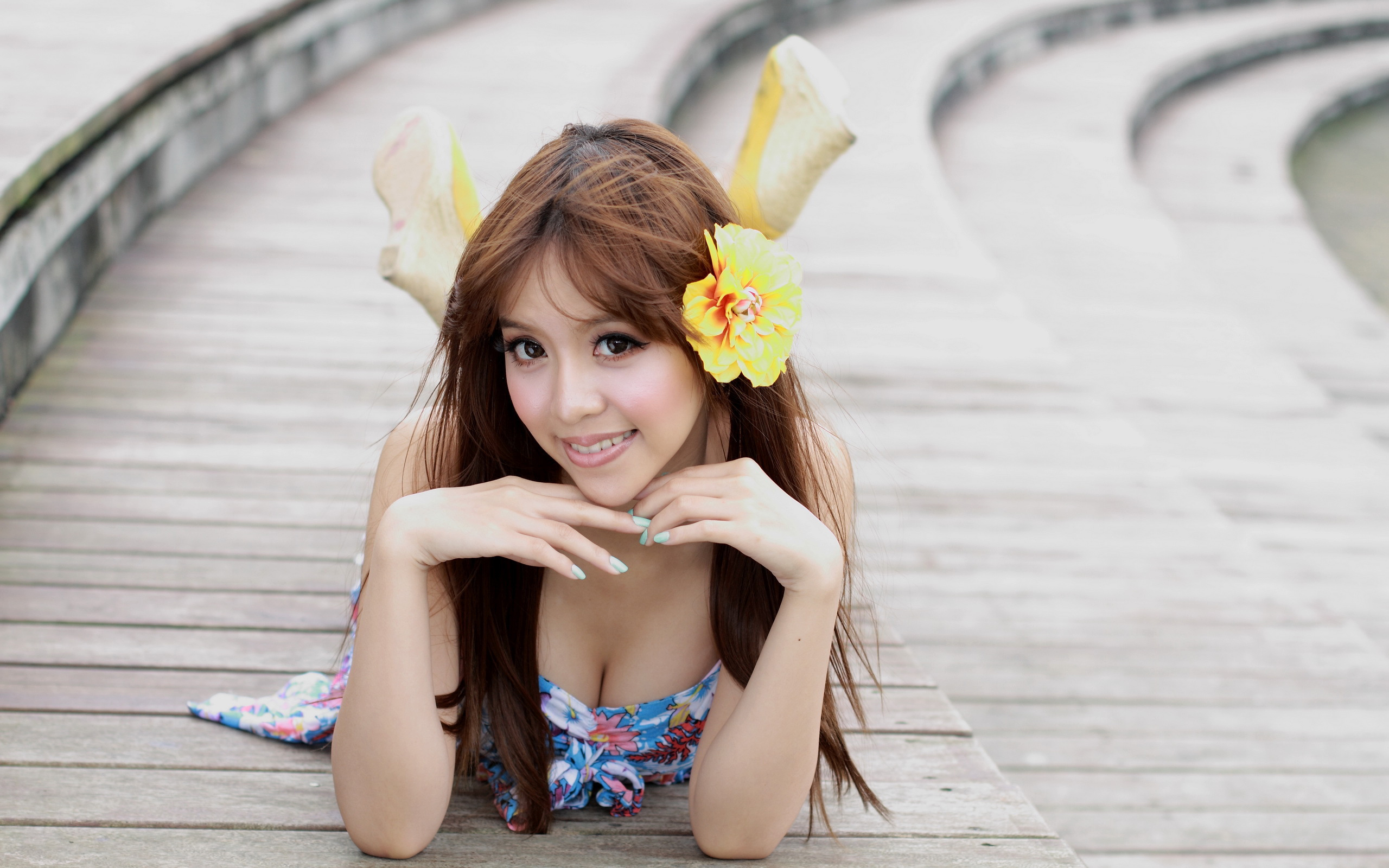 Скачать обои для рабочего стола Девyшка с цветкoм желтым и фото