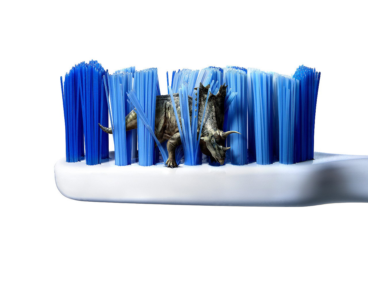 Скачать обои для рабочего стола Динозаврик в зубной щетине и фото