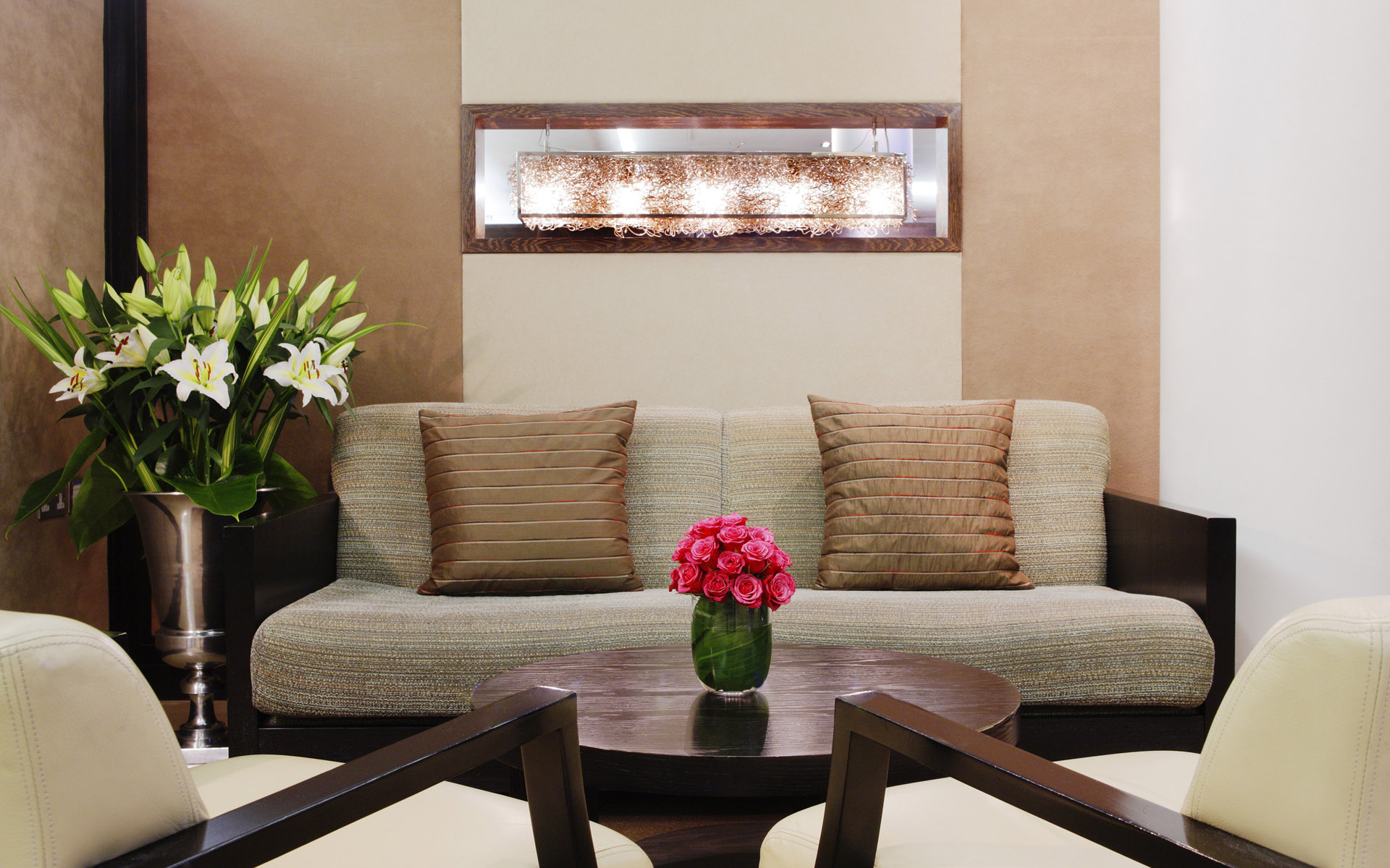 Скачать обои для рабочего стола Диван, два кресла, столик с цветами и фото