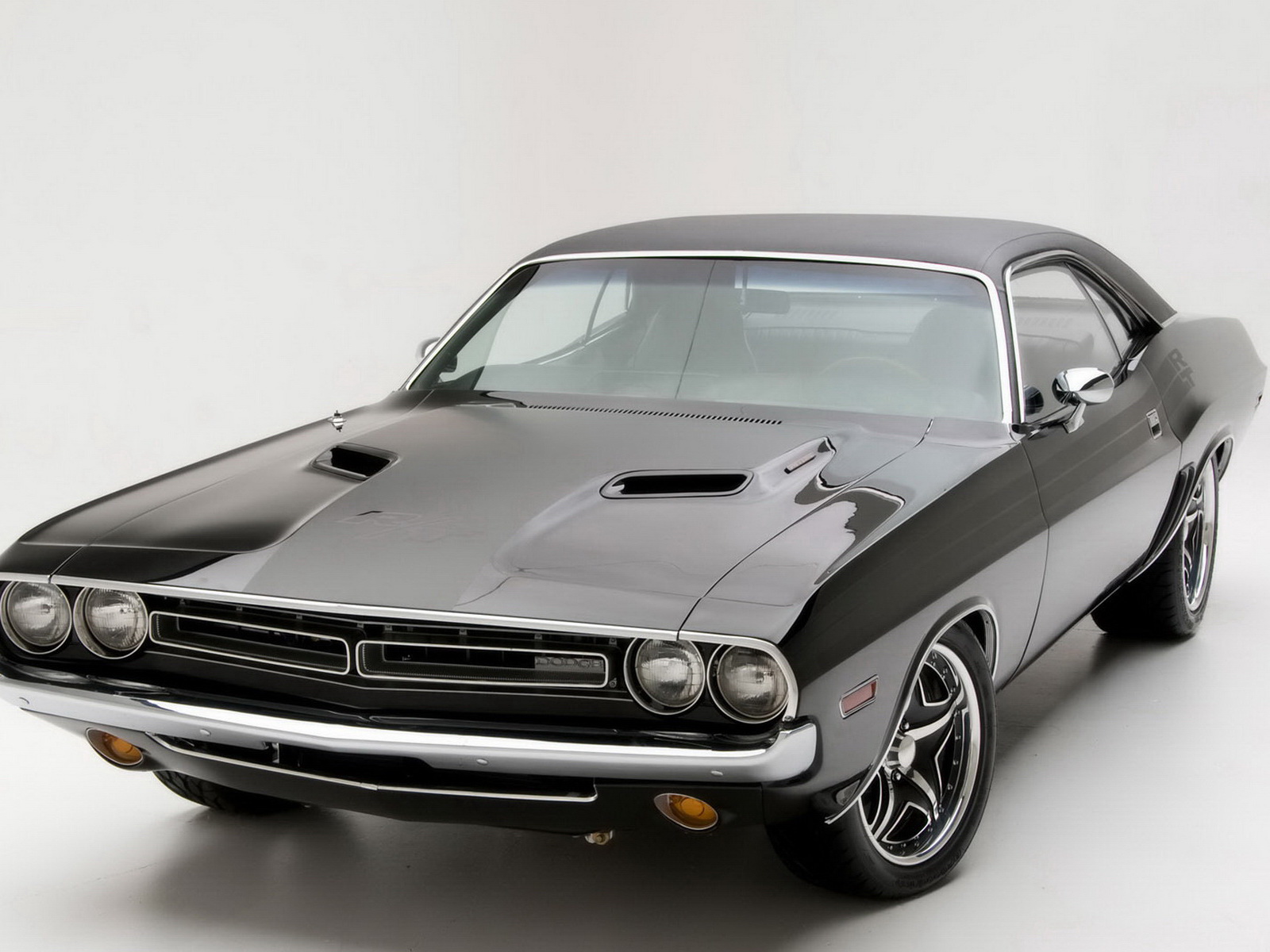 Скачать обои для рабочего стола Dodge Challenger RT 1971 вид авто в салоне с другого ракурса и фото