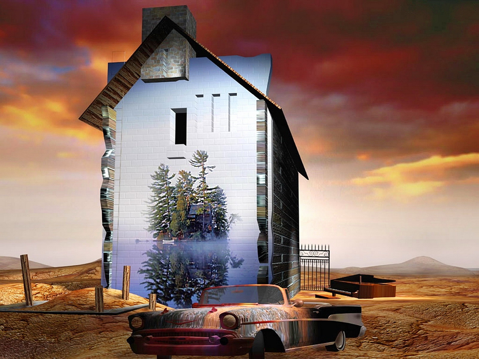 Скачать обои для рабочего стола Дом и разбитый автомобиль и фото