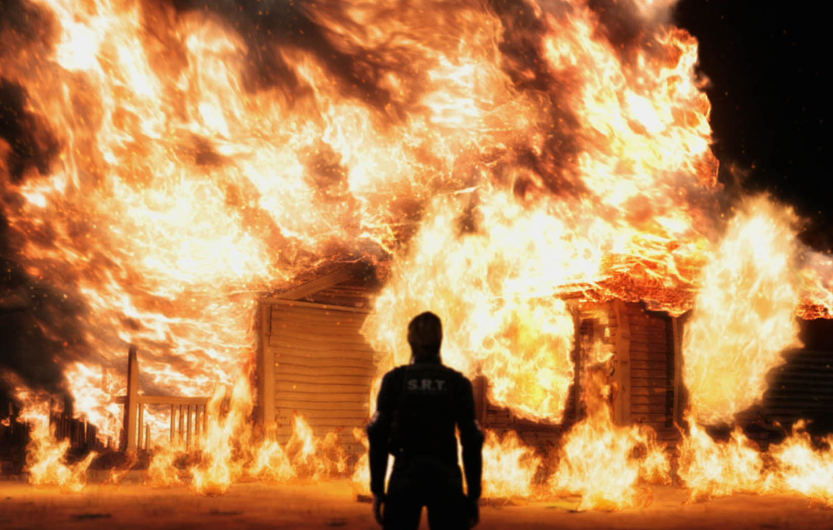 Скачать обои для рабочего стола Дом, охваченный гигатским пламенем и фото