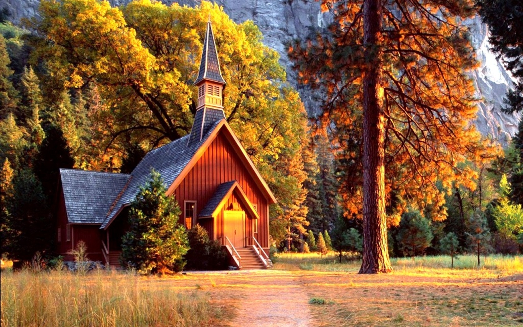 Скачать обои для рабочего стола Домик и осень и фото