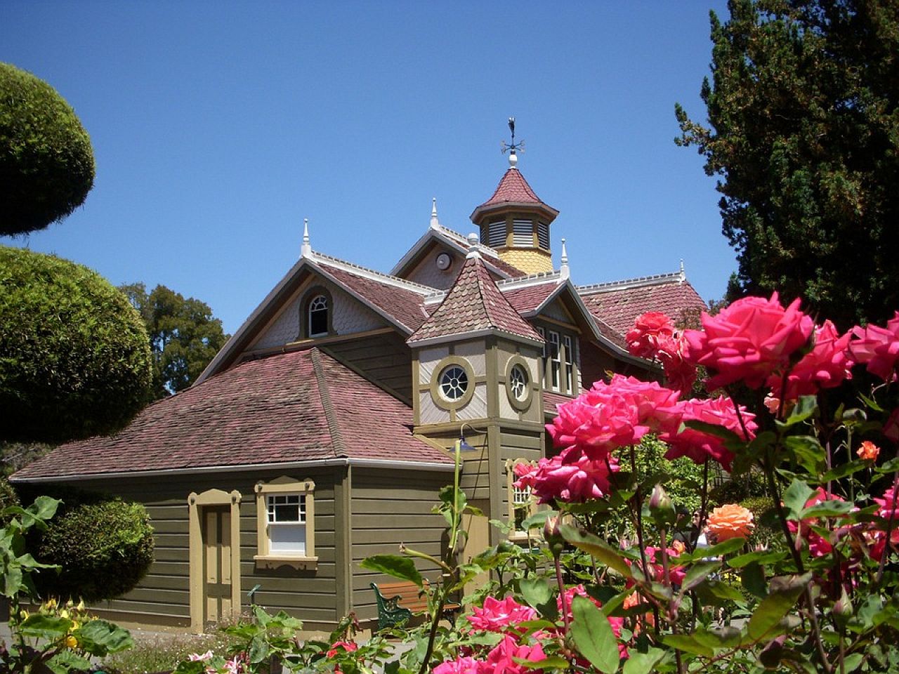 Скачать обои для рабочего стола Домик с розами и фото