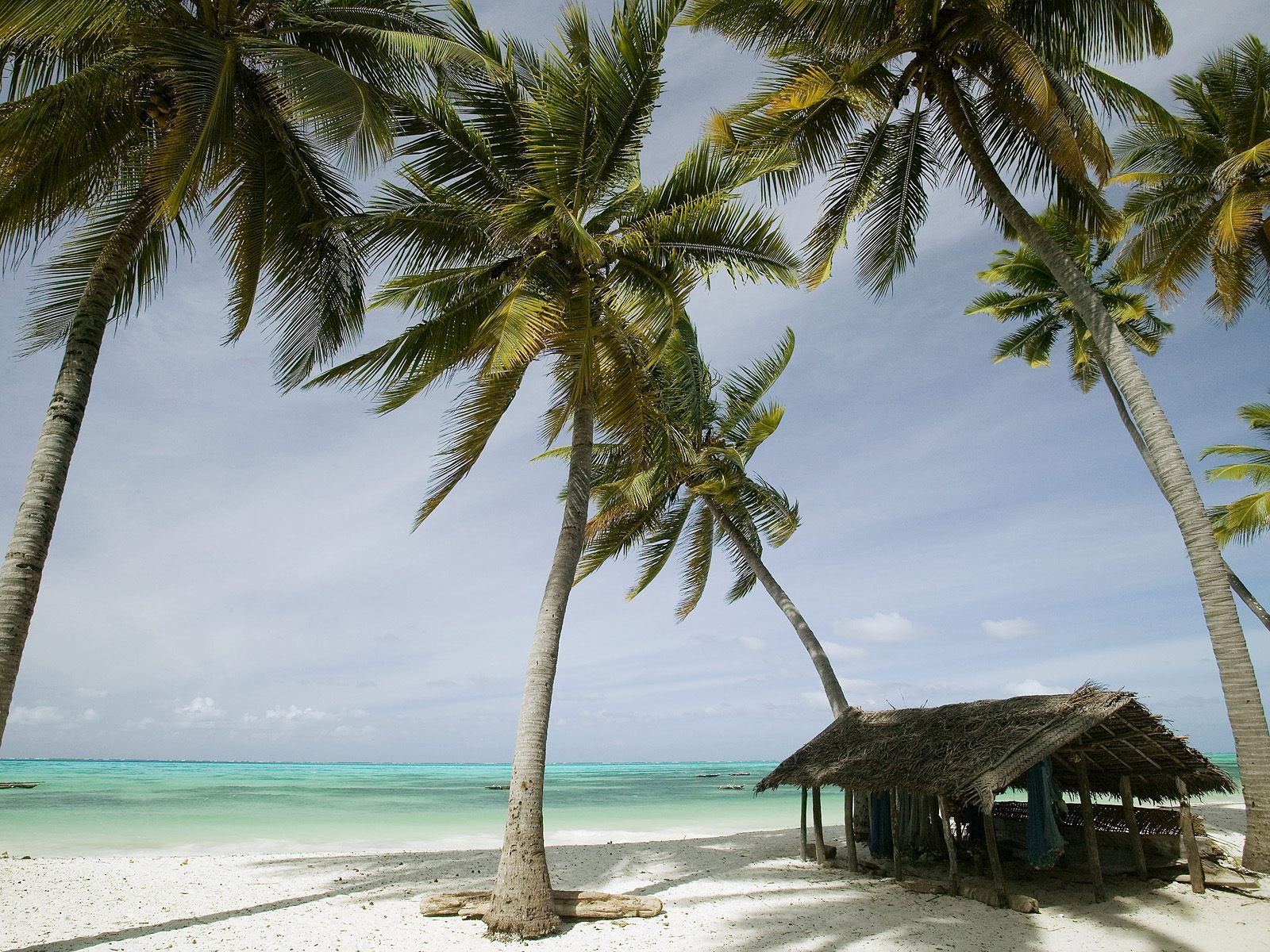 Скачать обои для рабочего стола Домик среди пальм и фото