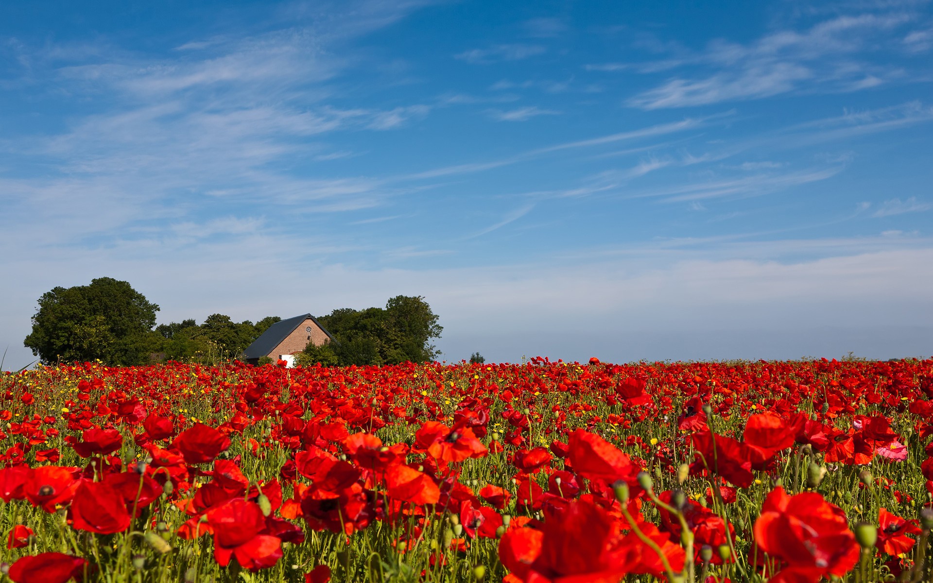 Скачать обои для рабочего стола Домик в поле маковом и фото