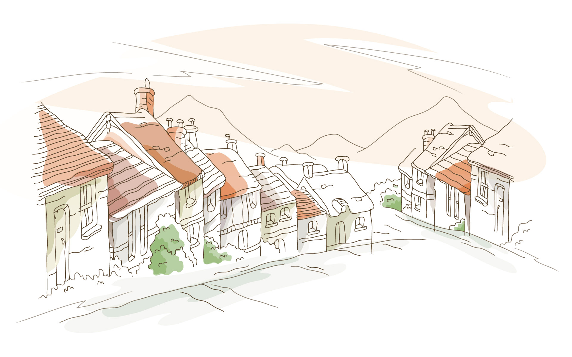 Обои Домики-гномки на склоне холма