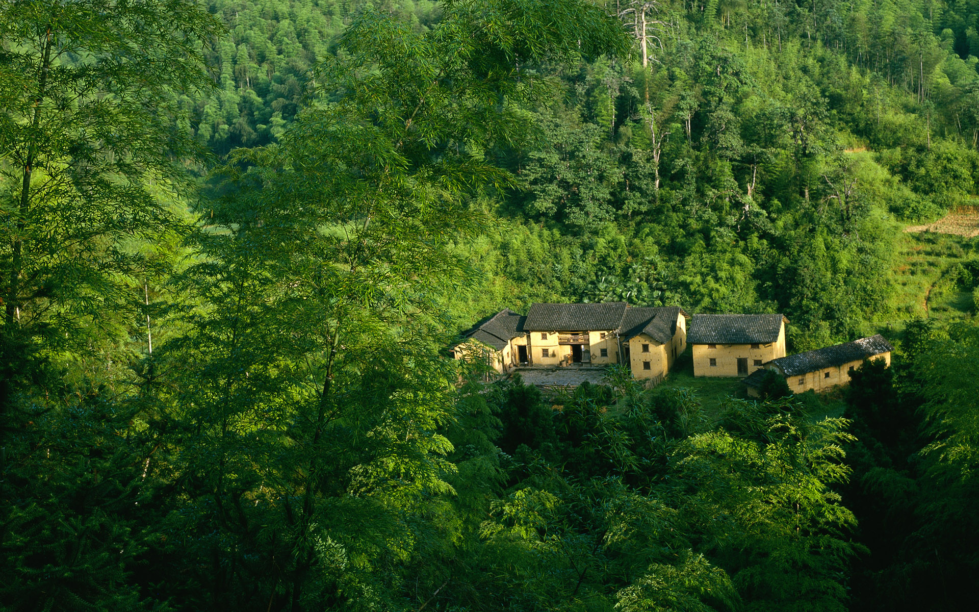 Скачать обои для рабочего стола Домики среди густых китайских лесов и фото