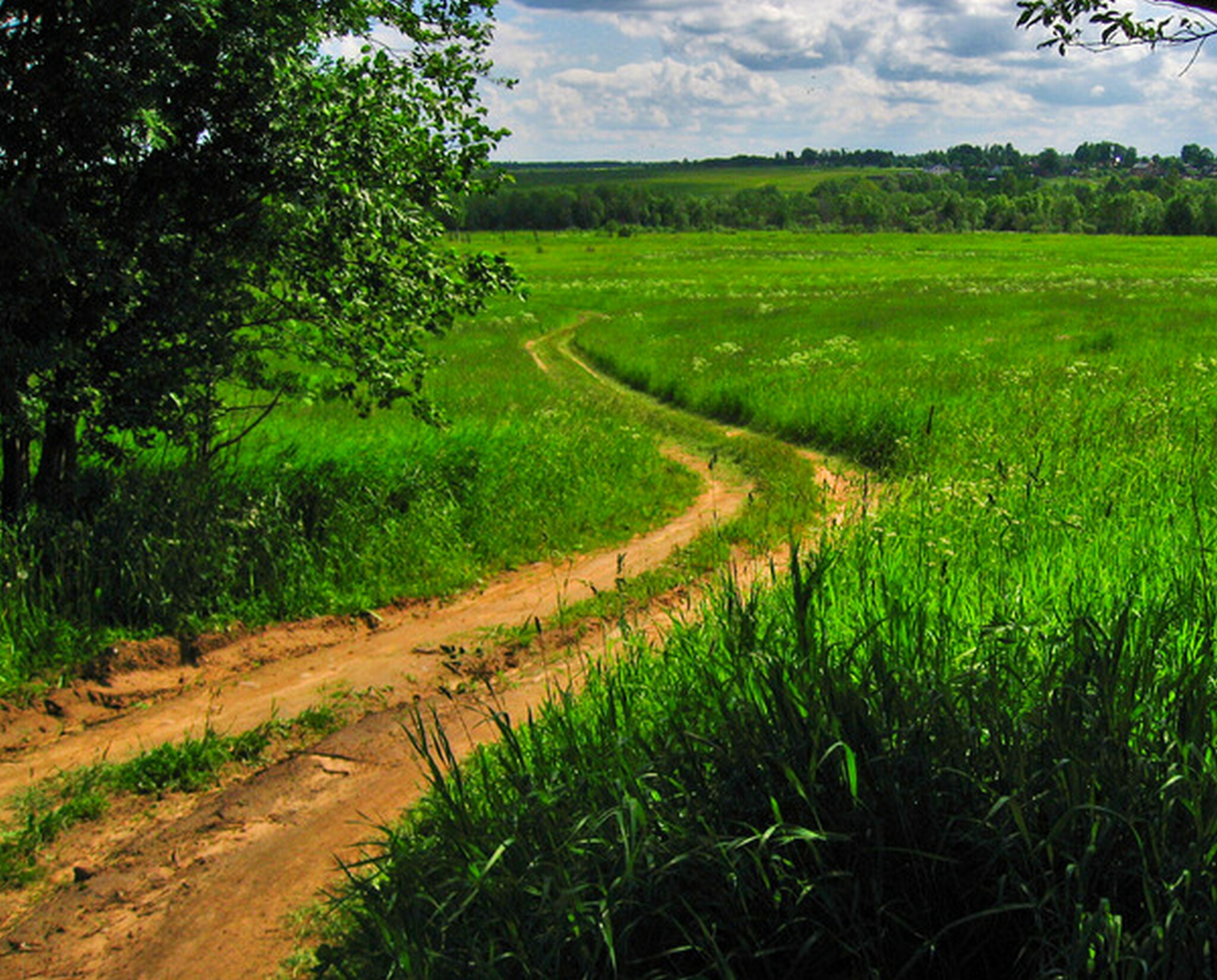 Обои Дорога по лугу змеится