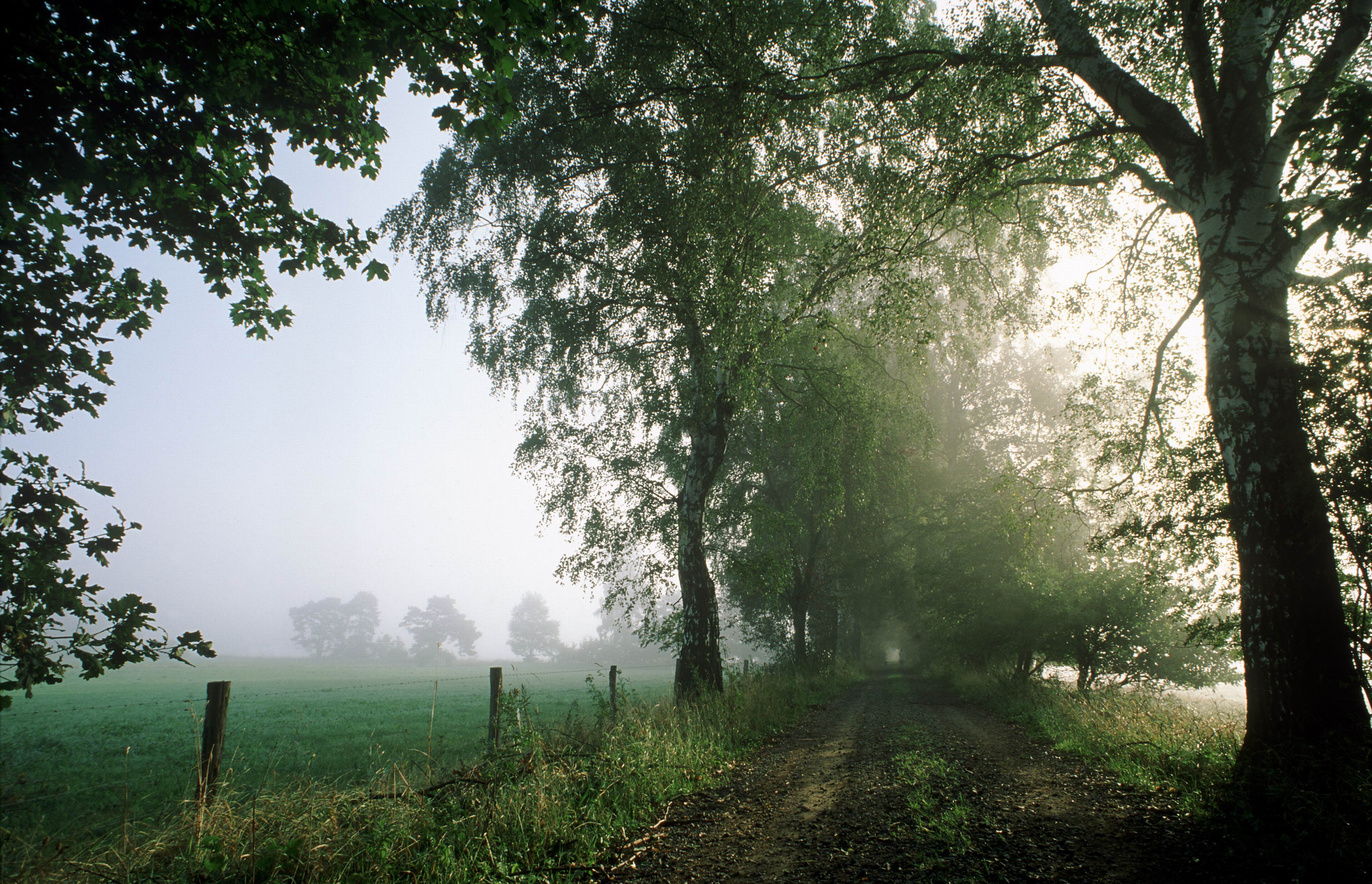 Скачать обои для рабочего стола Дорога под берёзами и фото