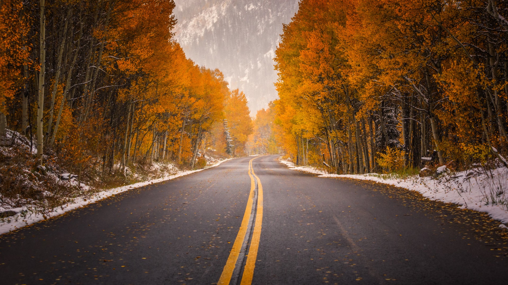 Скачать обои для рабочего стола Дорога поздней осенью и фото