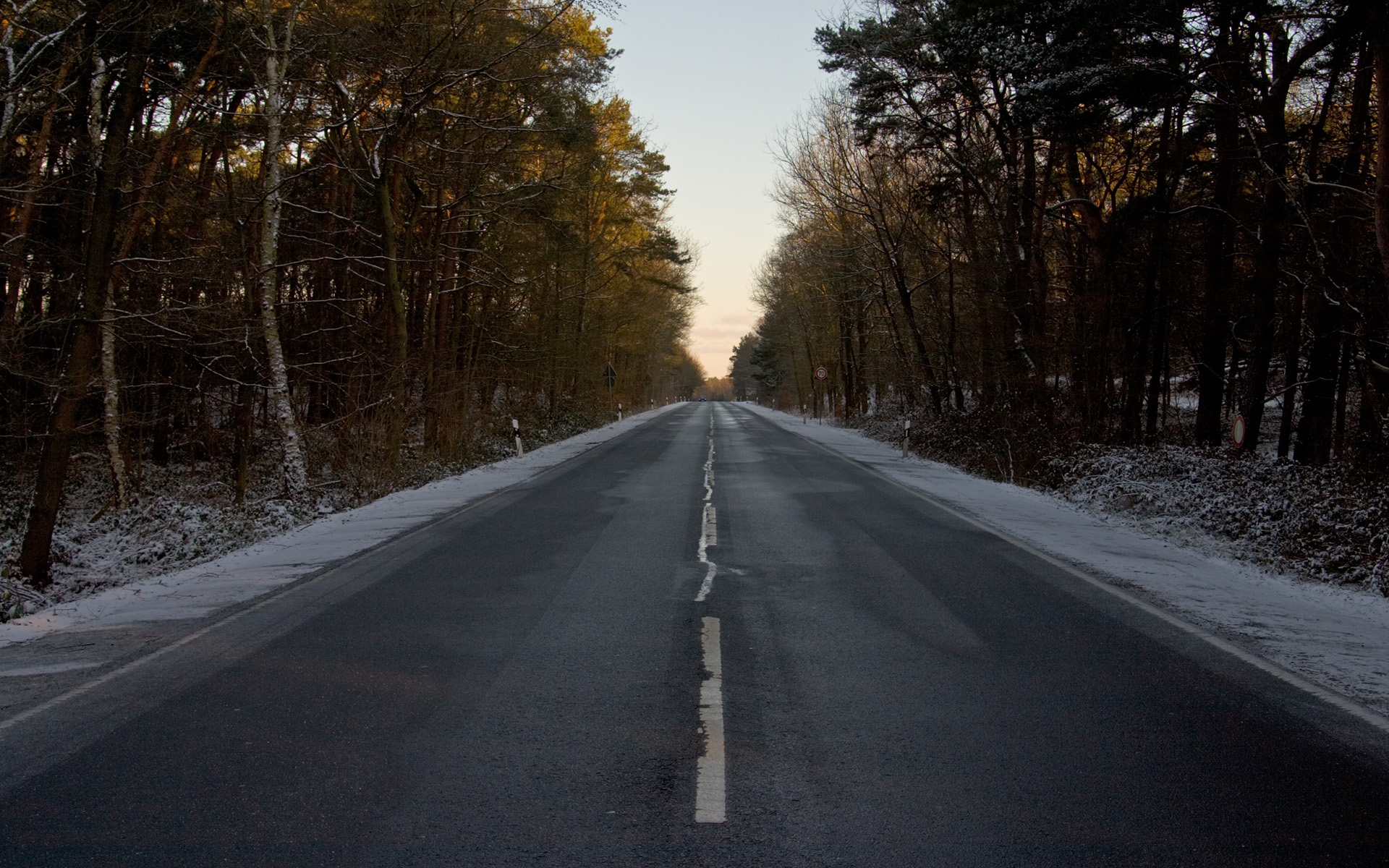 Скачать обои для рабочего стола Дорога разделяющая лес и фото