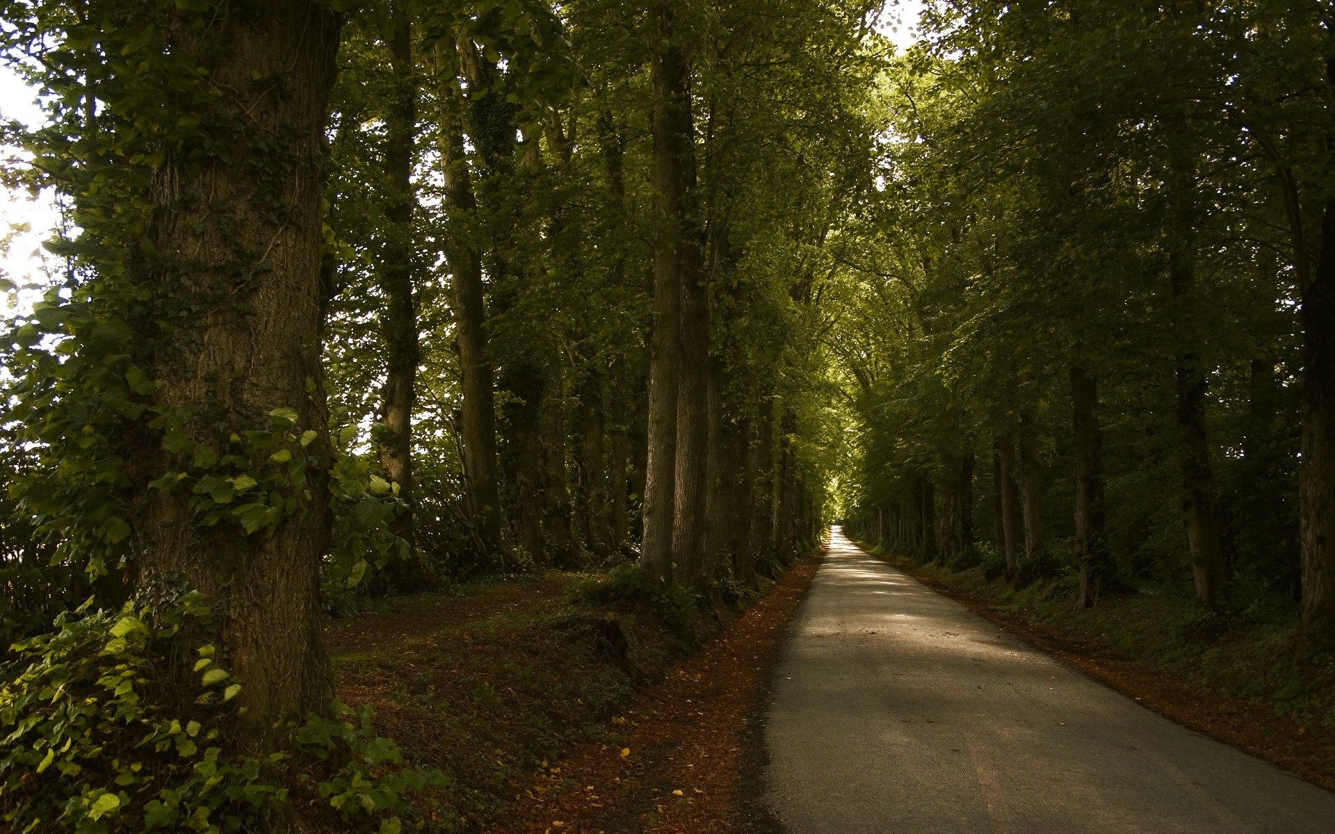 Похожие обои на Дорога с большими деревьями на обочинe: