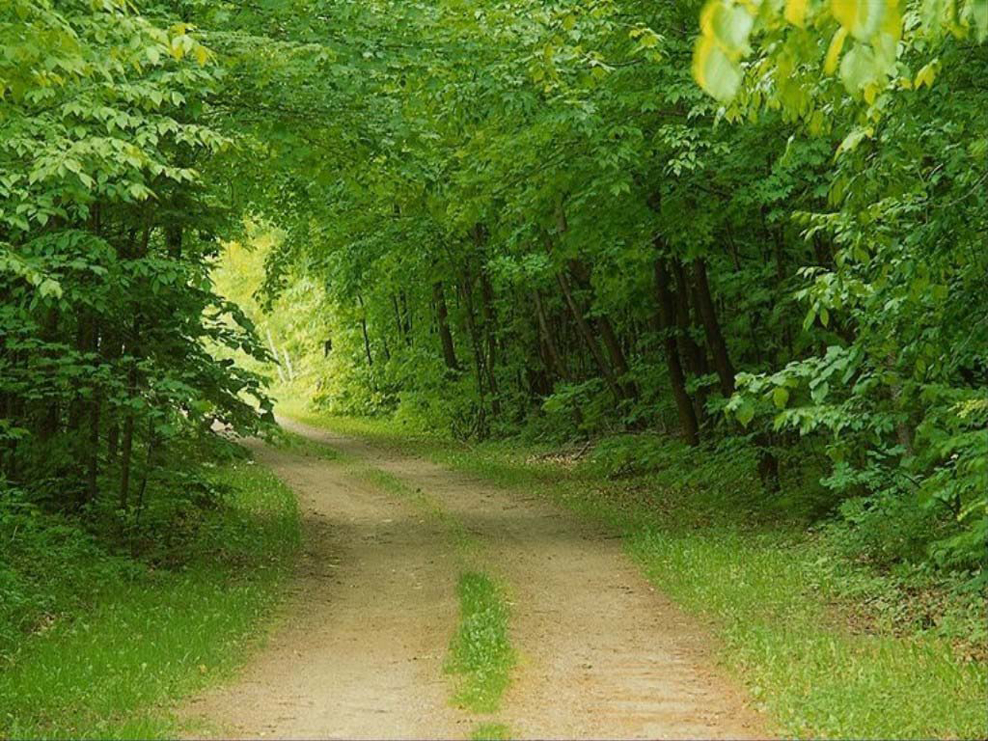 Скачать обои для рабочего стола Дорога сквозь зеленый лес и фото