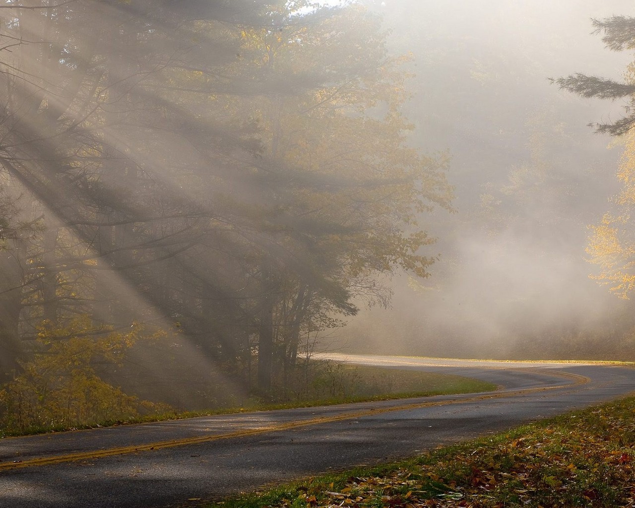 Скачать обои для рабочего стола Дорога. Солнце и туман и фото