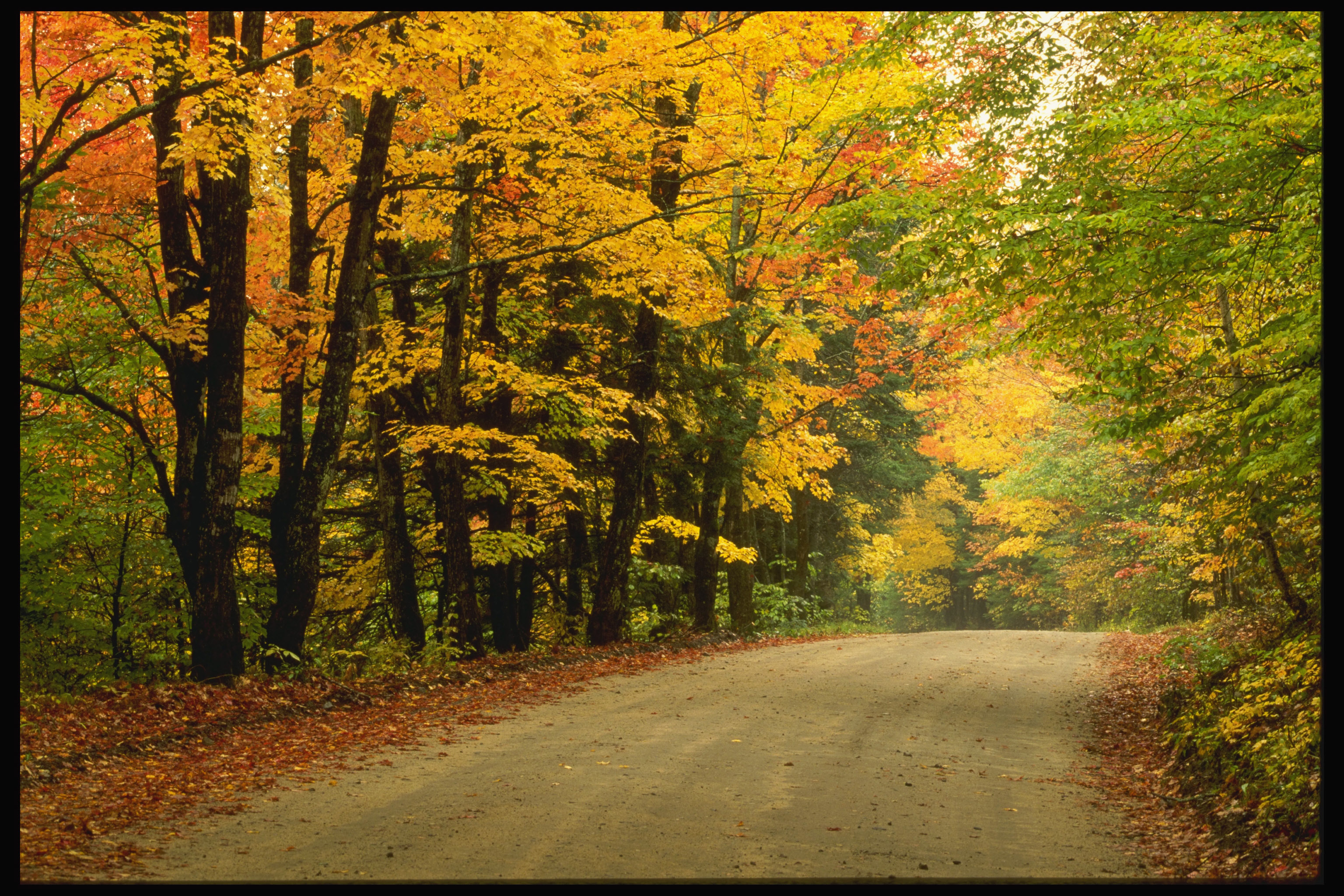 Скачать обои для рабочего стола Дорога в осеннем лесу и фото