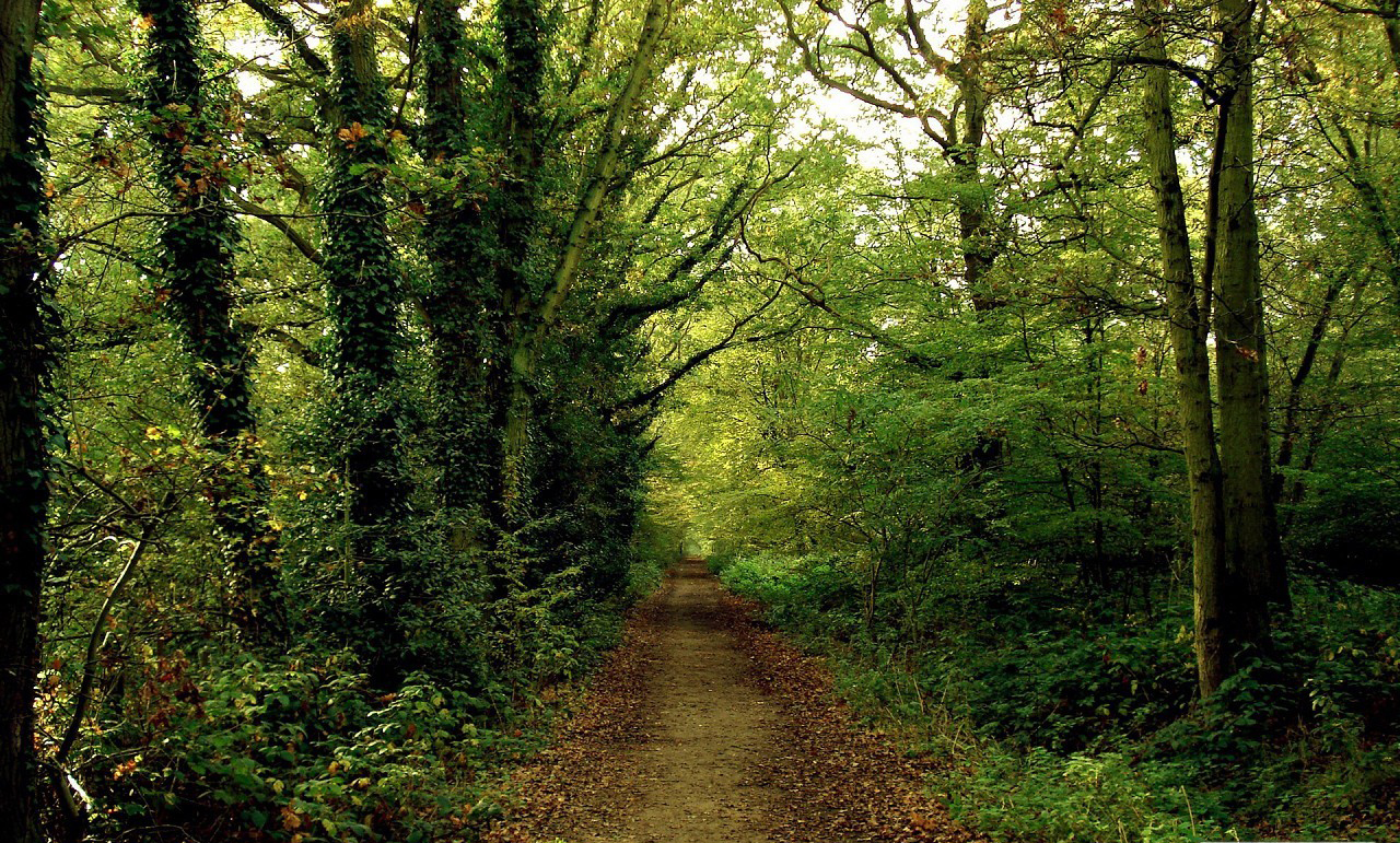 Обои Дорога в зелёном лесу