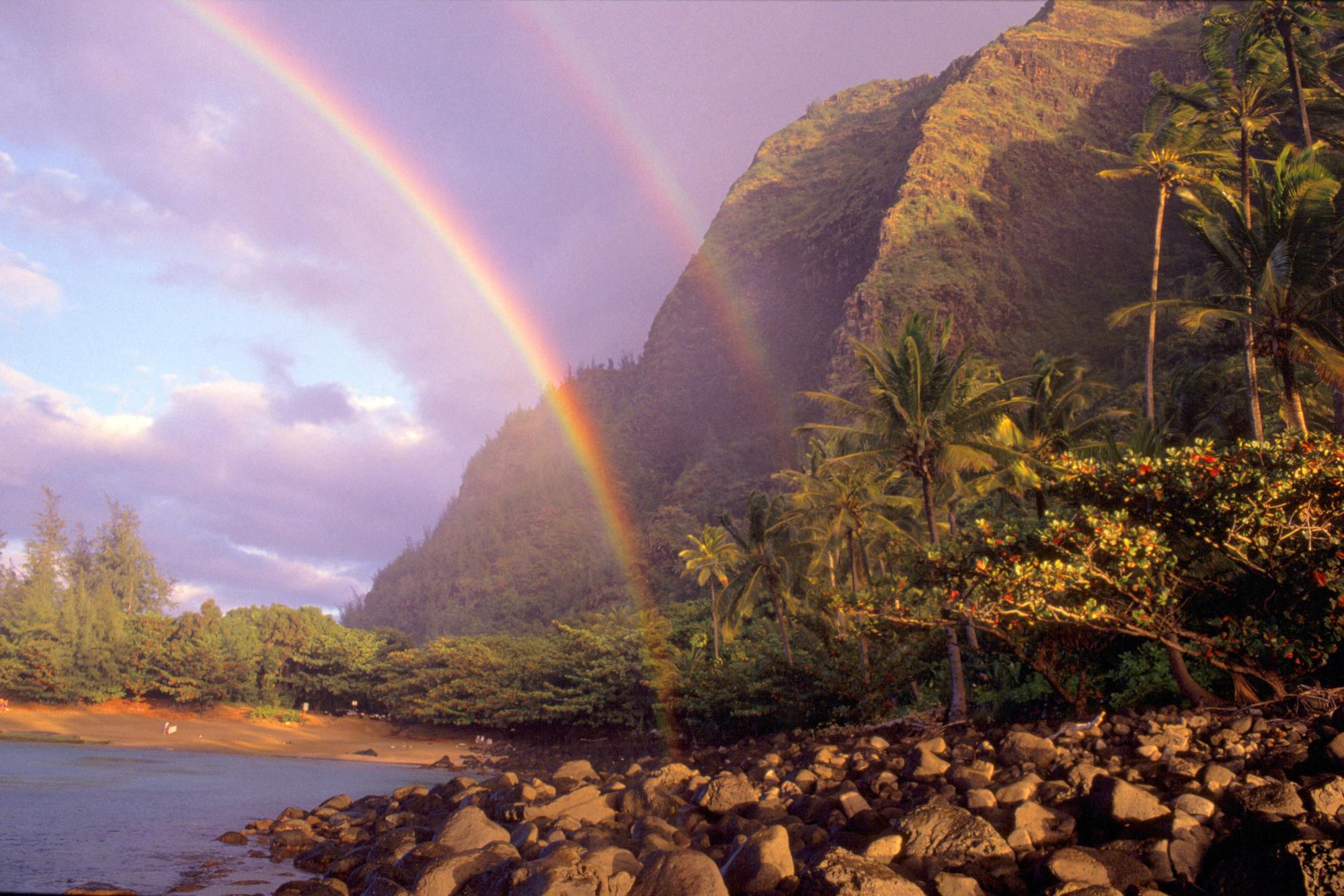 Скачать обои для рабочего стола Double Rainbow, Kee Beach, Kauai, Hawaii и фото