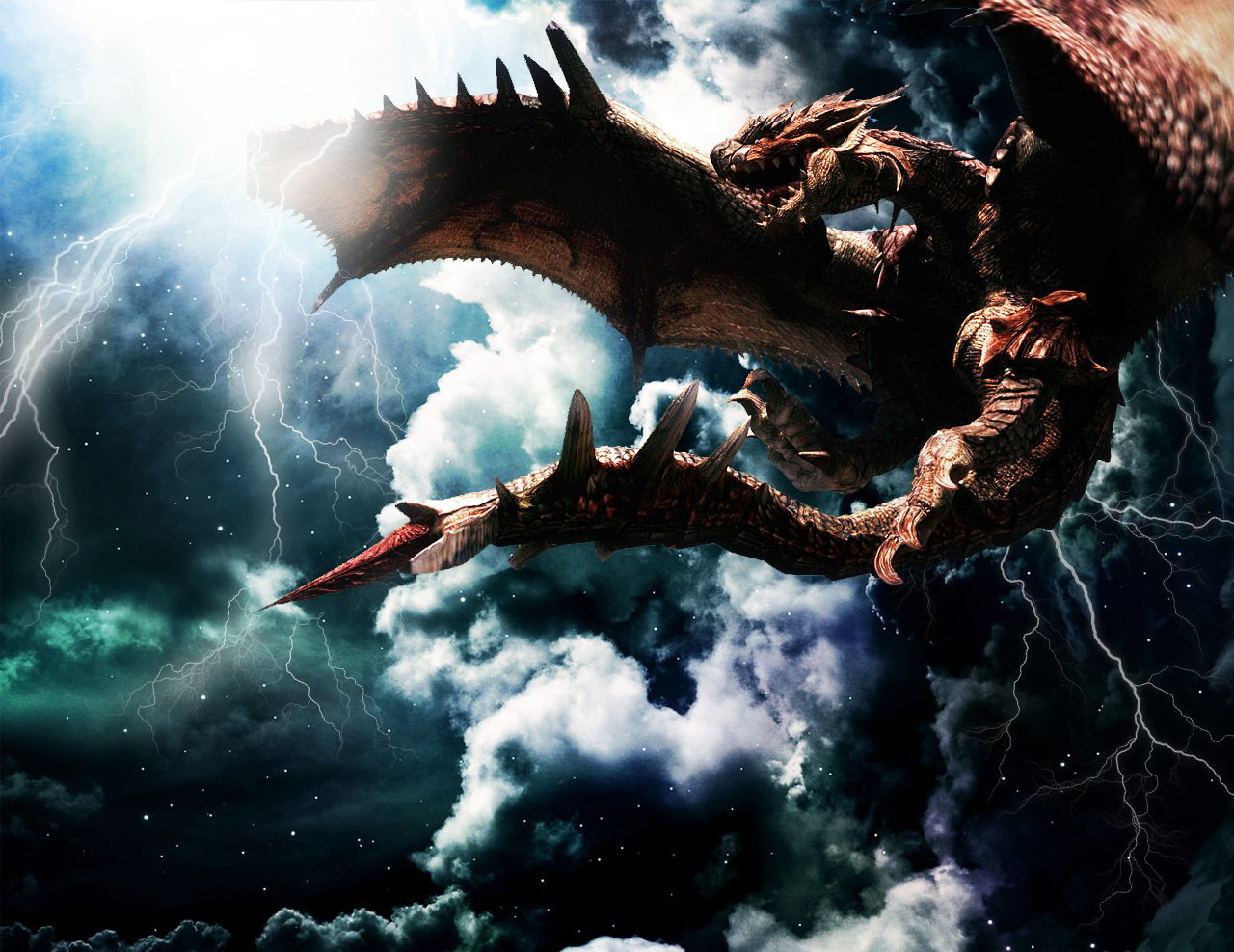 Скачать обои для рабочего стола Дракон и молнии и фото