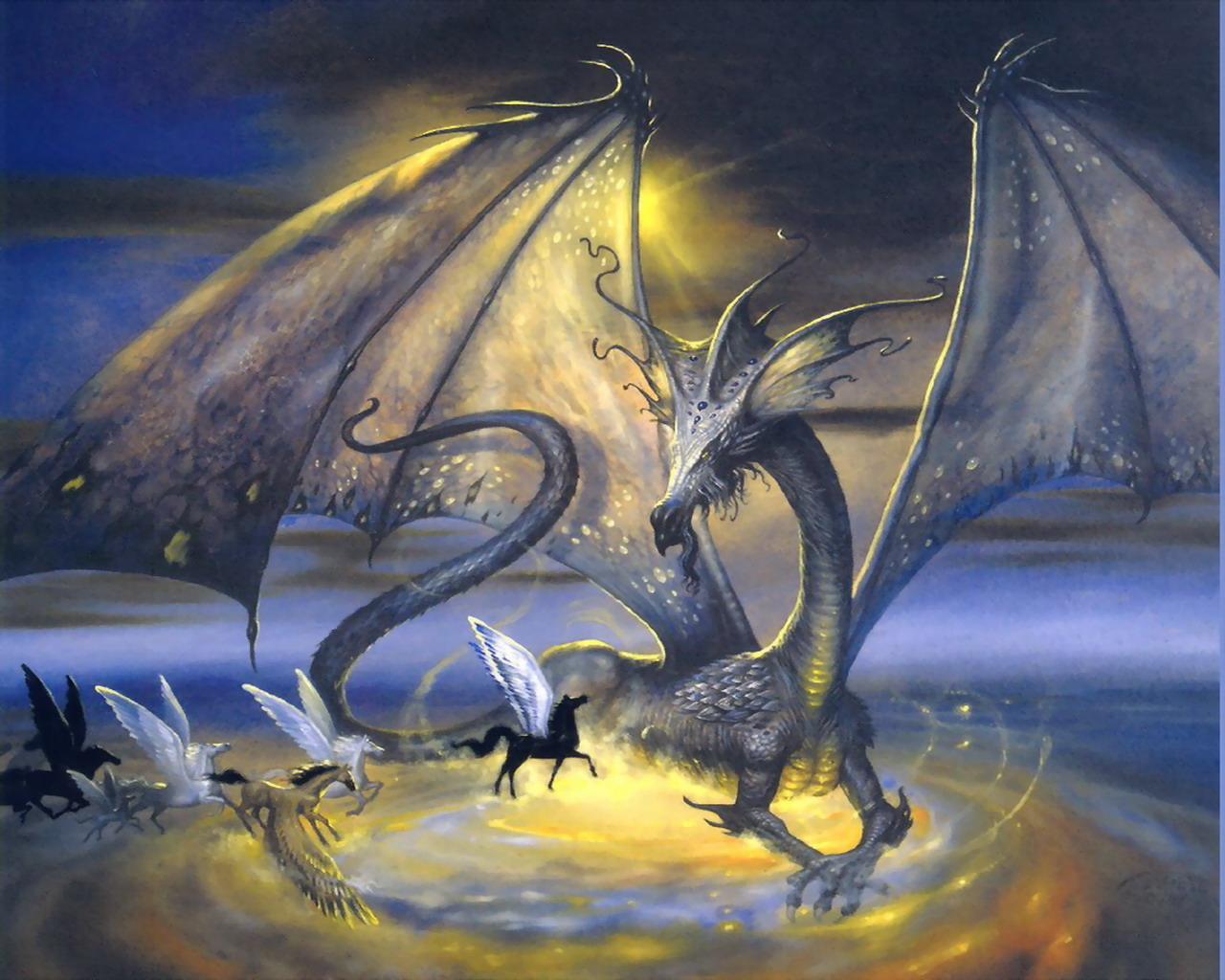 Скачать обои для рабочего стола Дракон с пегасами и фото