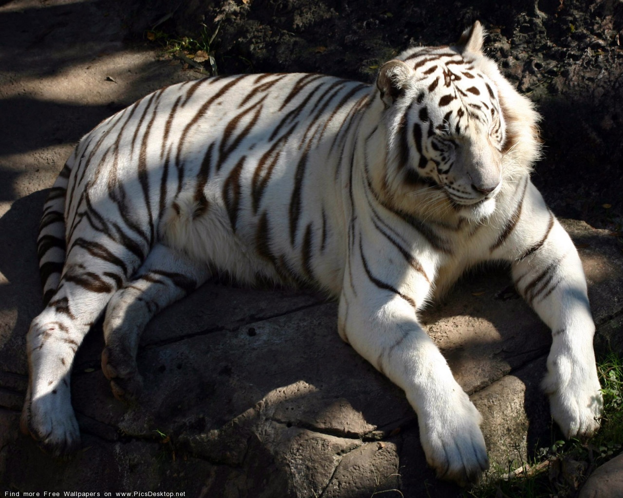 Скачать обои для рабочего стола Дремлющий белый тигр и фото