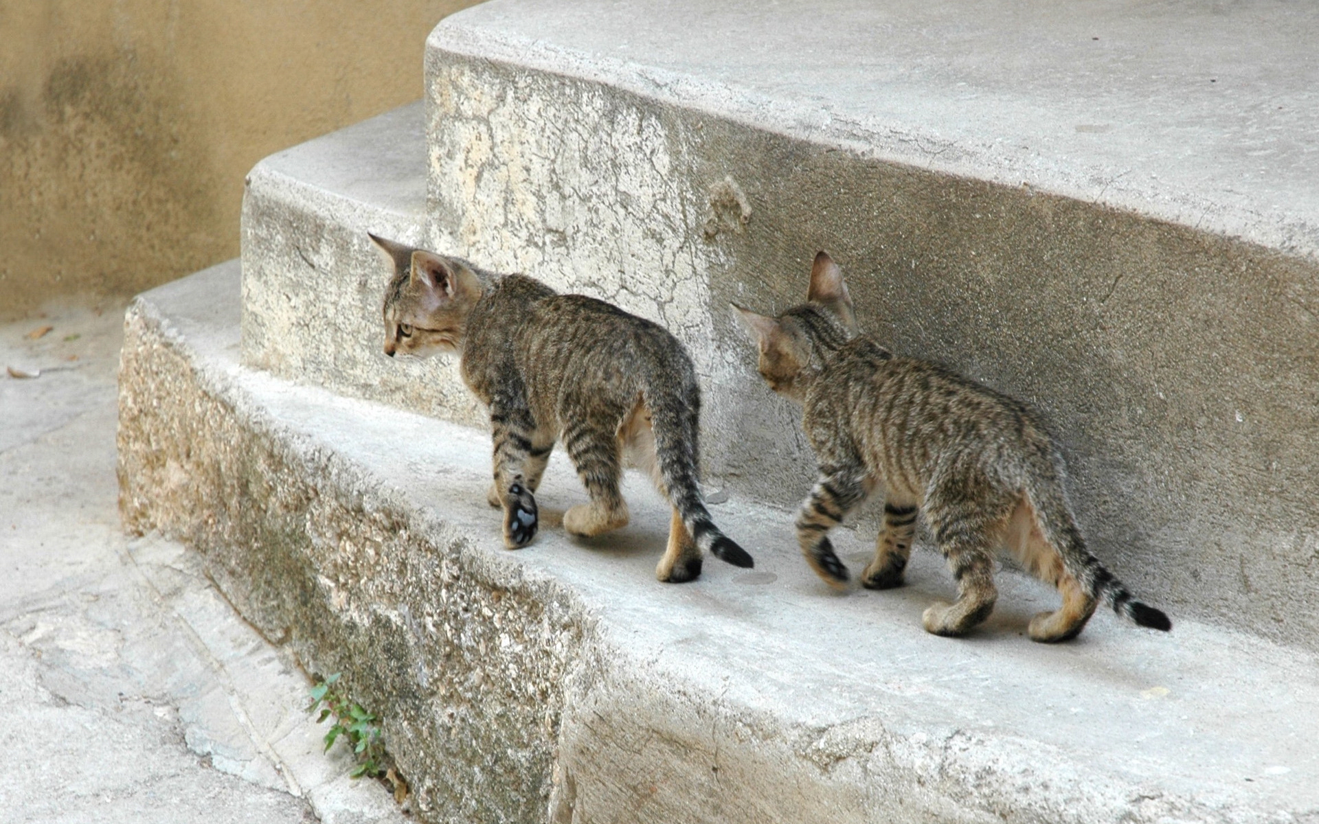 Скачать обои для рабочего стола Два дворовых кота и фото