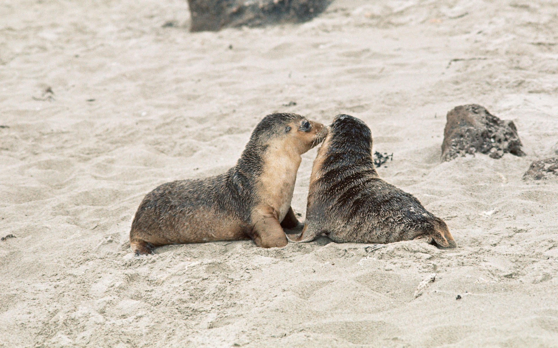 Скачать обои для рабочего стола Два молодых морских котика и фото