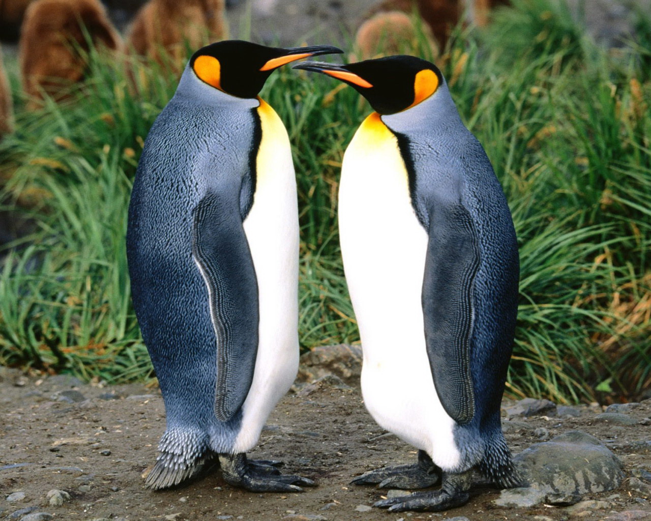 Похожие обои на Два пингвина с синими спинками встретились пообщаться:
