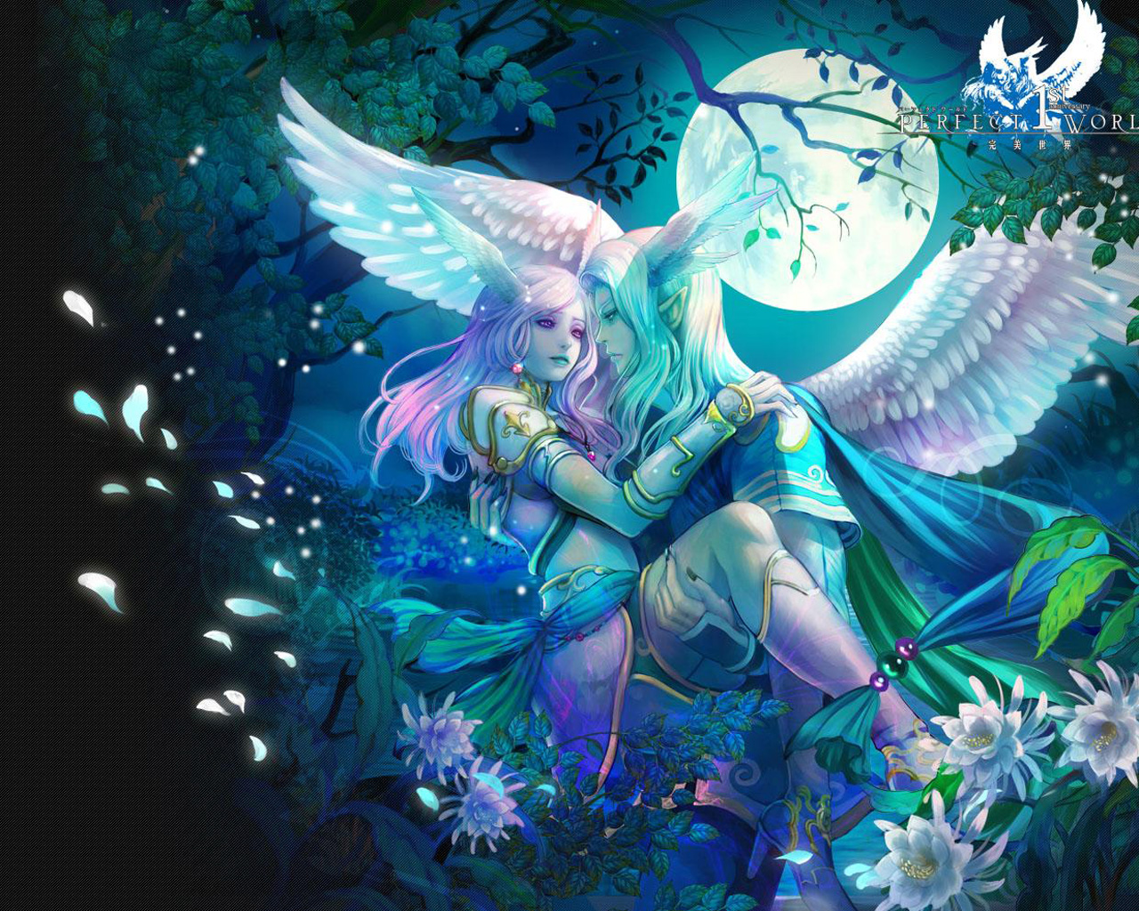Скачать обои для рабочего стола Два влюбленных ангела и фото