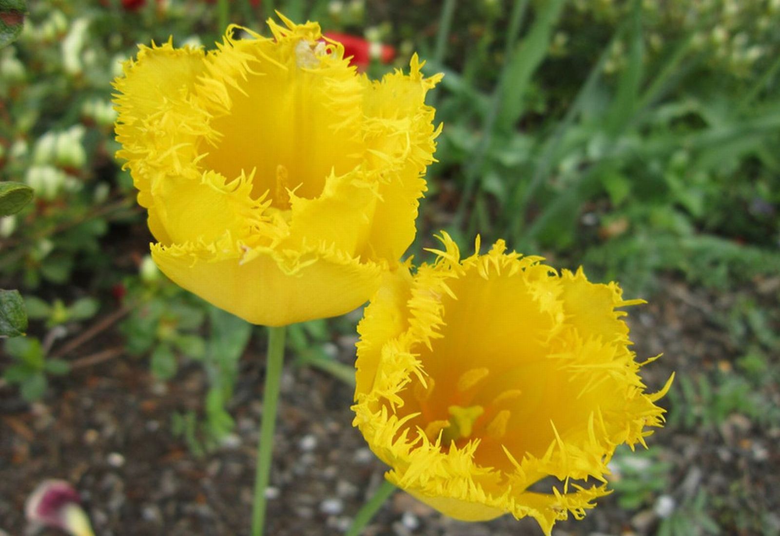 Скачать обои для рабочего стола Два жёлтых тюльпана и фото