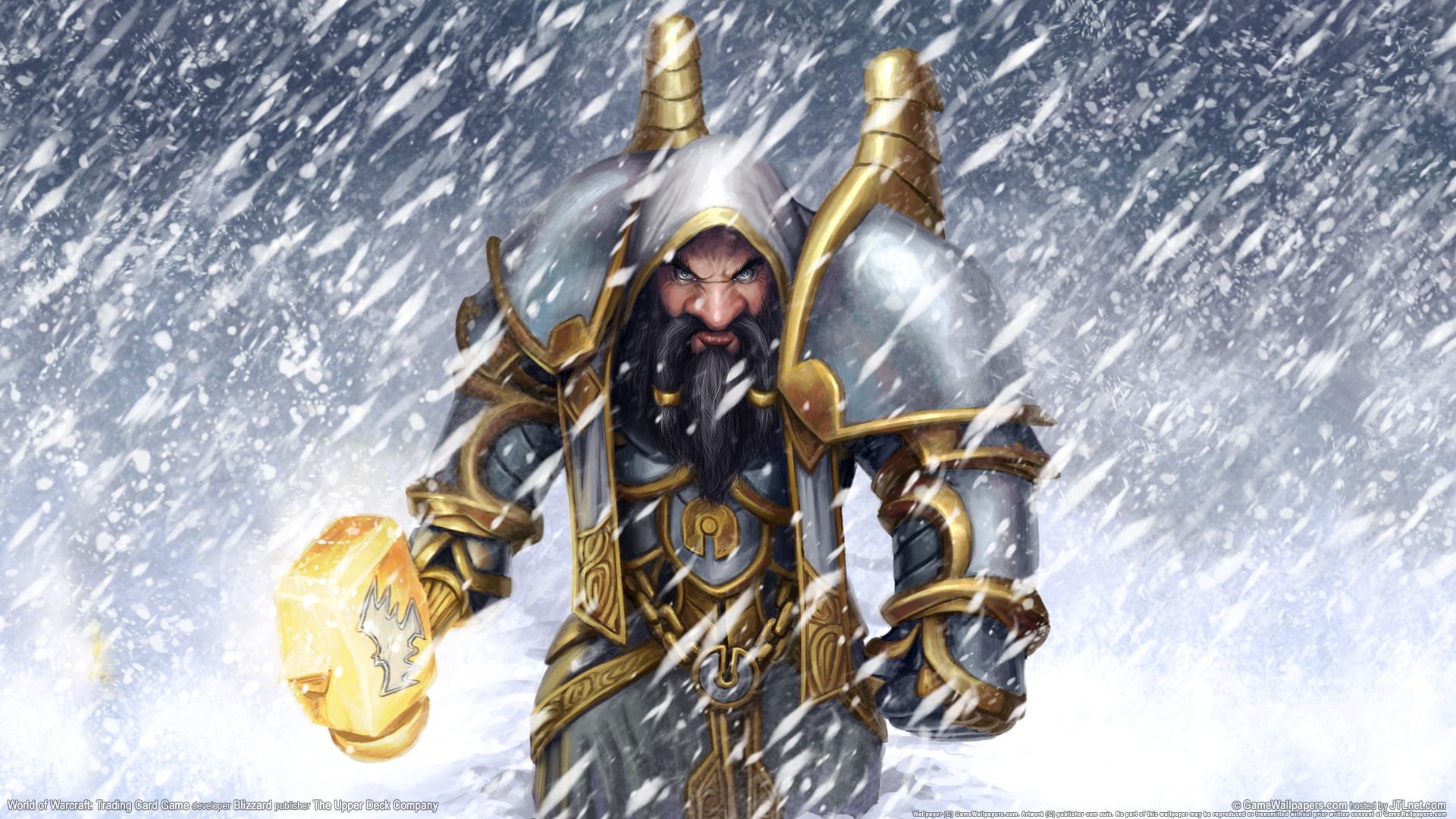 Скачать обои для рабочего стола Дварф с золотым молотом в снежную бурю и фото